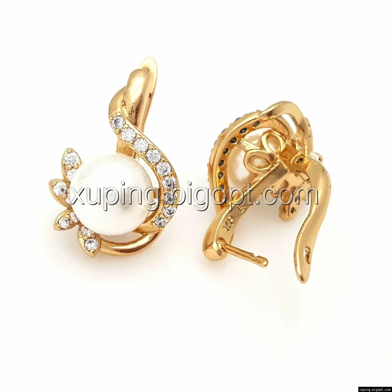 Серьги Завиток с Жемчужиной, англ.замок, позолота