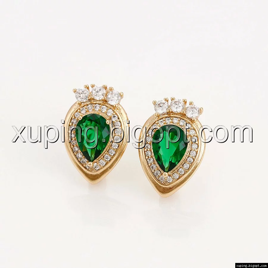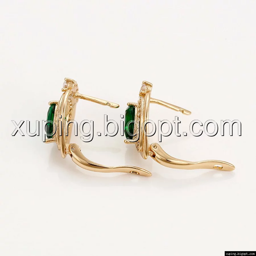 Сережки Нарядні, зелений цирконій, англ.замок, позолота Xuping, 18К