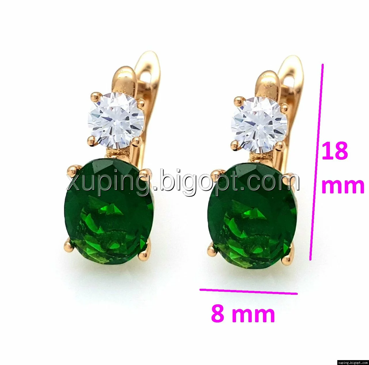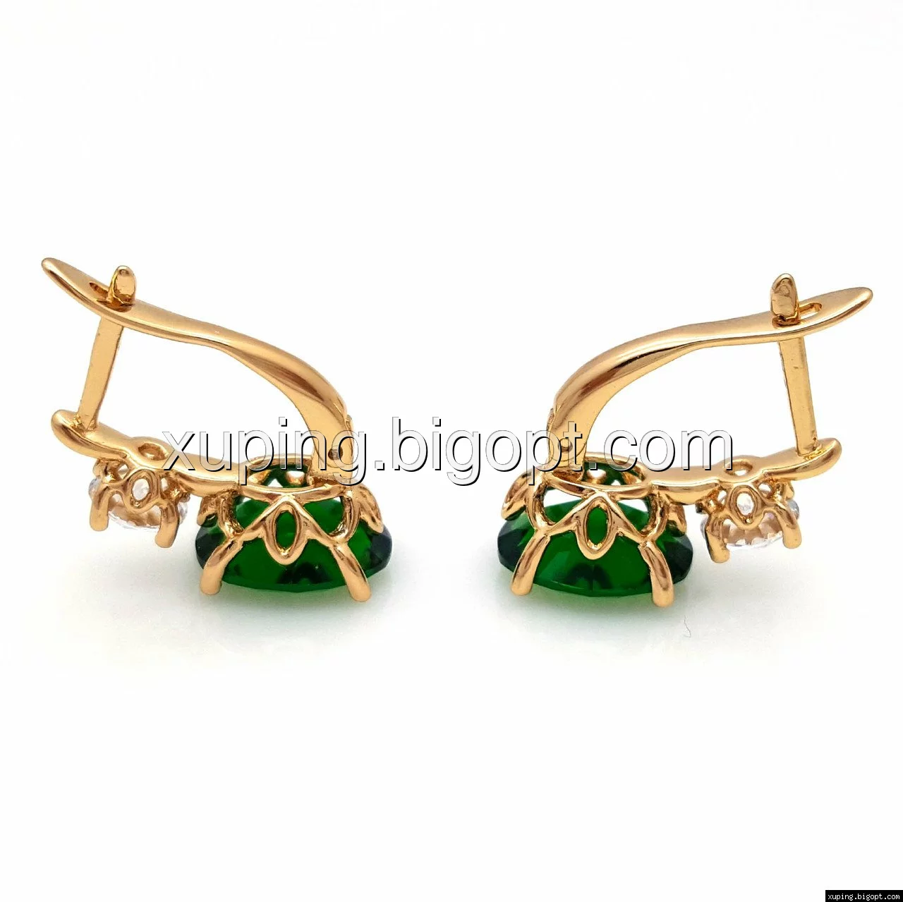 Серьги Зеленый цирконий, англ.замок, позолота Xuping