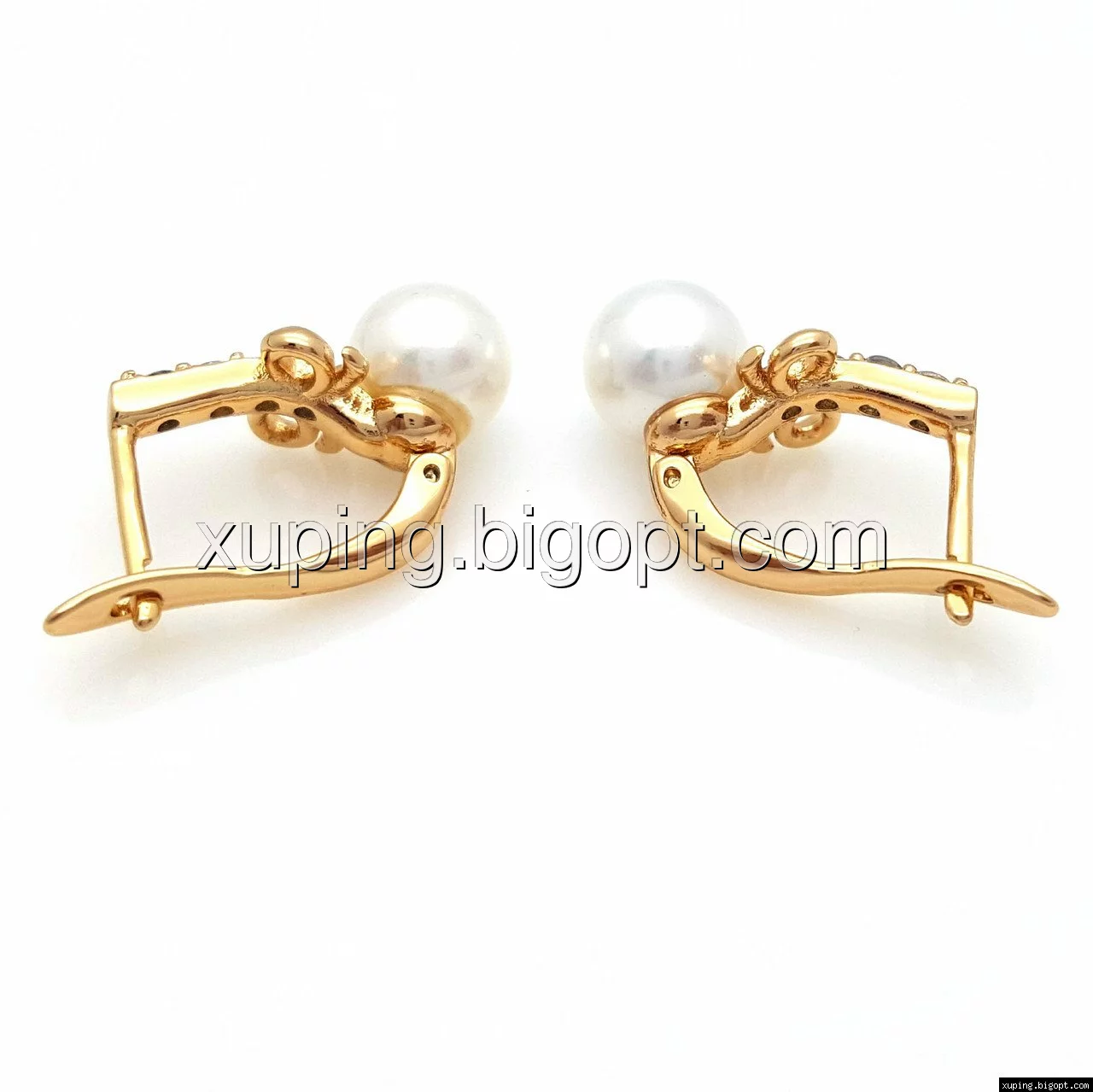 Серьги Жемчужина с бантом и камнями, англ.замок, позолота Xuping