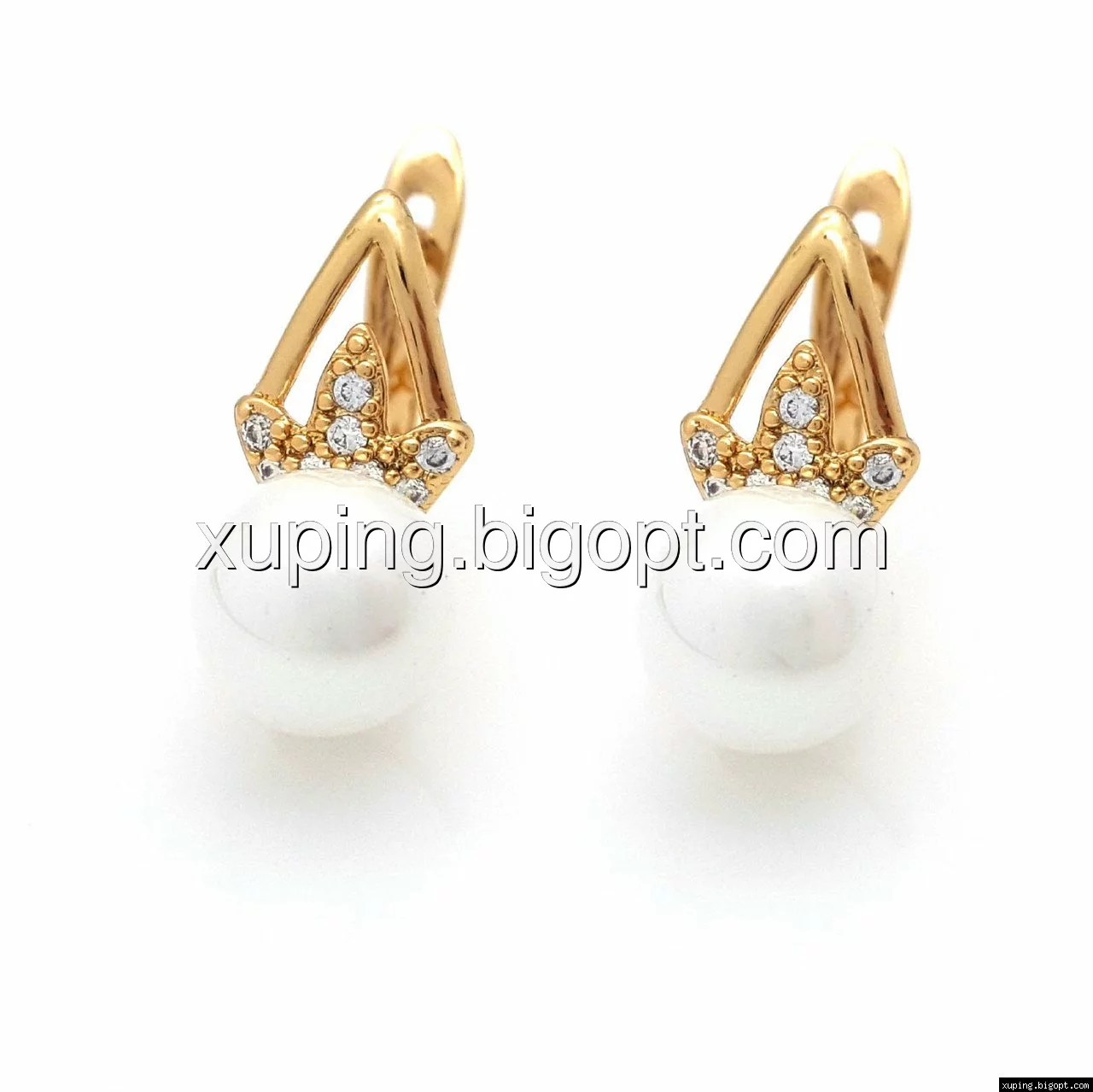 Серьги Жемчужина с короной, вставка цирконий, англ.замок, позолота Xuping