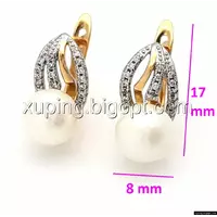 Серьги Жемчужина со вставками циркония, англ.замок, позолота+родий