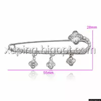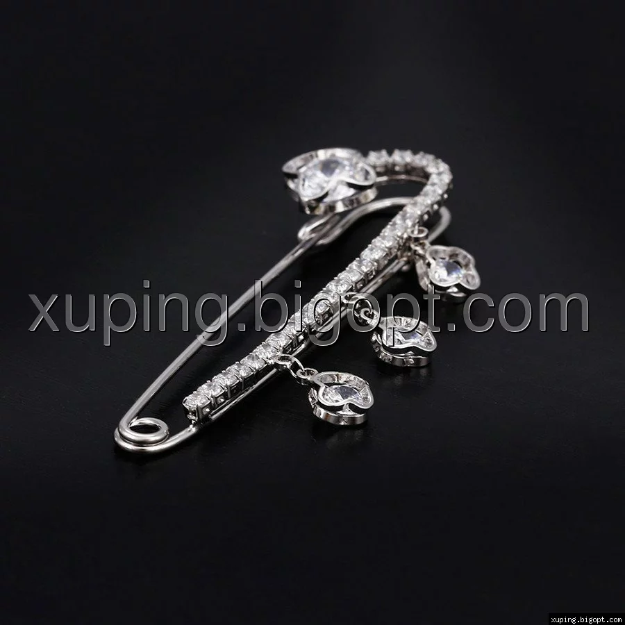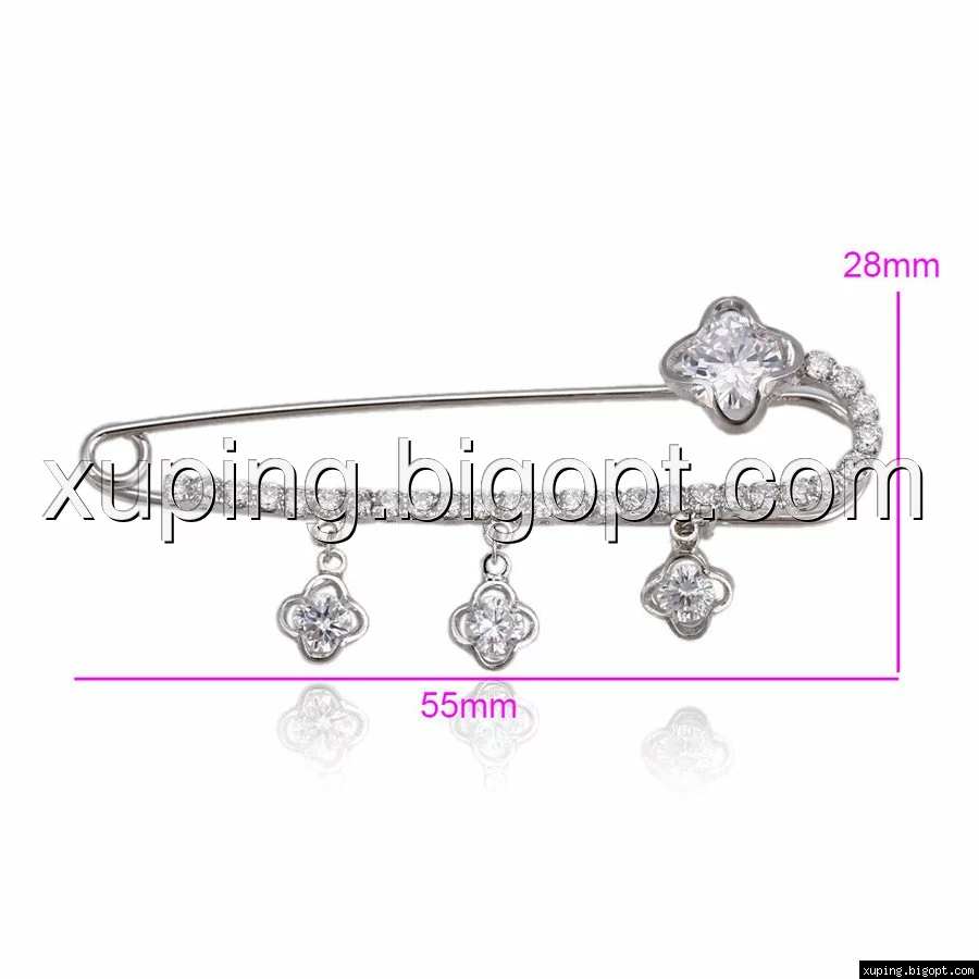 Брошь выполнена из медицинского сплава на основе титана с добавлением легирующих елементов, с целью улучшения каких-либо ее свойств, например коррозионной стойкости или прочности. Такой сплав не вызывает аллергии, не вступает в реакцию с потом человека, не меняет свои свойства под воздействием соленой воды и солнца. Поверхность цепочки покрыта родием чтобы придать ей ярко-белый цвет и дополнительно защитить от повреждений .