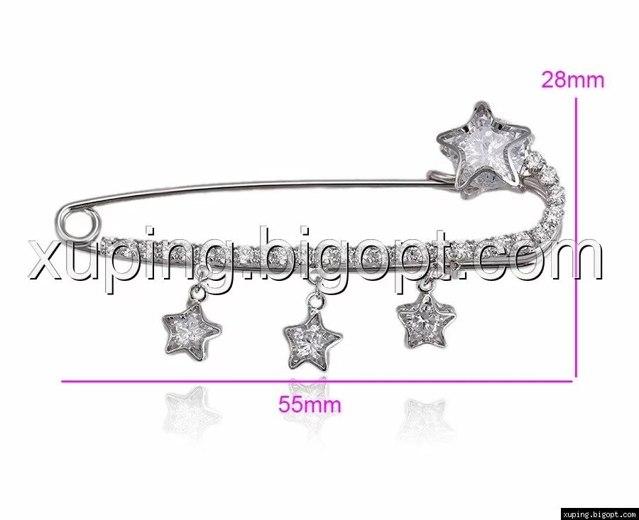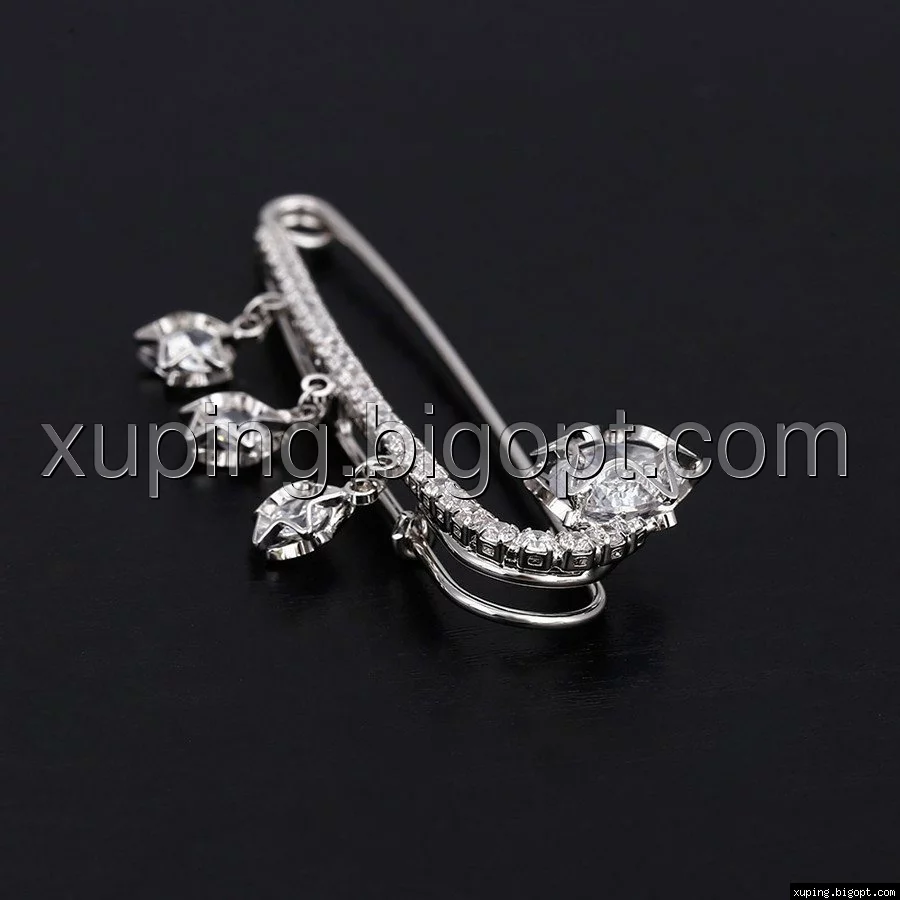 Брошь выполнена из медицинского сплава на основе титана с добавлением легирующих елементов, с целью улучшения каких-либо ее свойств, например коррозионной стойкости или прочности. Такой сплав не вызывает аллергии, не вступает в реакцию с потом человека, не меняет свои свойства под воздействием соленой воды и солнца. Поверхность цепочки покрыта родием чтобы придать ей ярко-белый цвет и дополнительно защитить от повреждений .