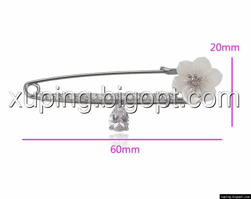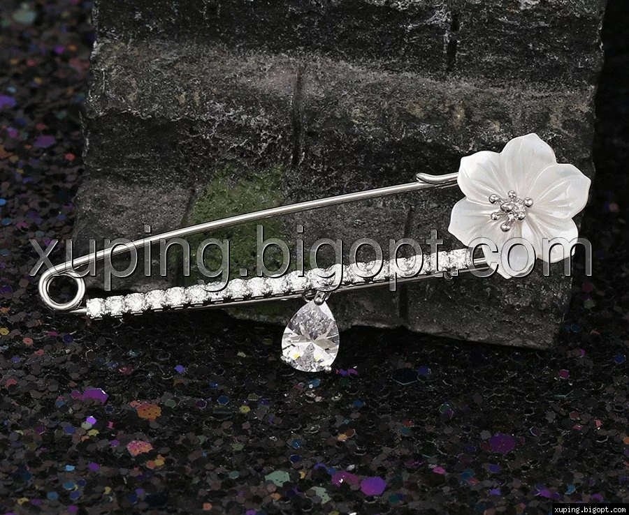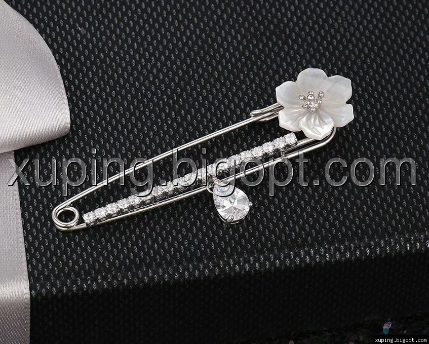 Брошь выполнена из медицинского сплава на основе титана с добавлением легирующих елементов, с целью улучшения каких-либо ее свойств, например коррозионной стойкости или прочности. Такой сплав не вызывает аллергии, не вступает в реакцию с потом человека, не меняет свои свойства под воздействием соленой воды и солнца. Поверхность цепочки покрыта родием чтобы придать ей ярко-белый цвет и дополнительно защитить от повреждений .