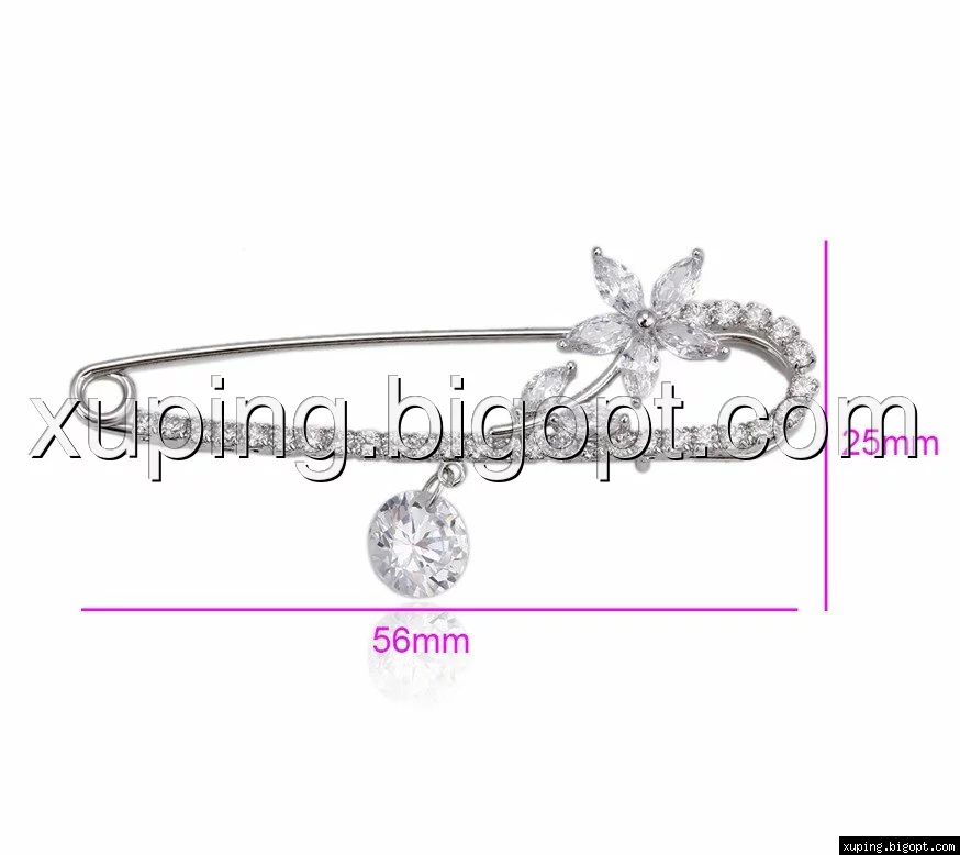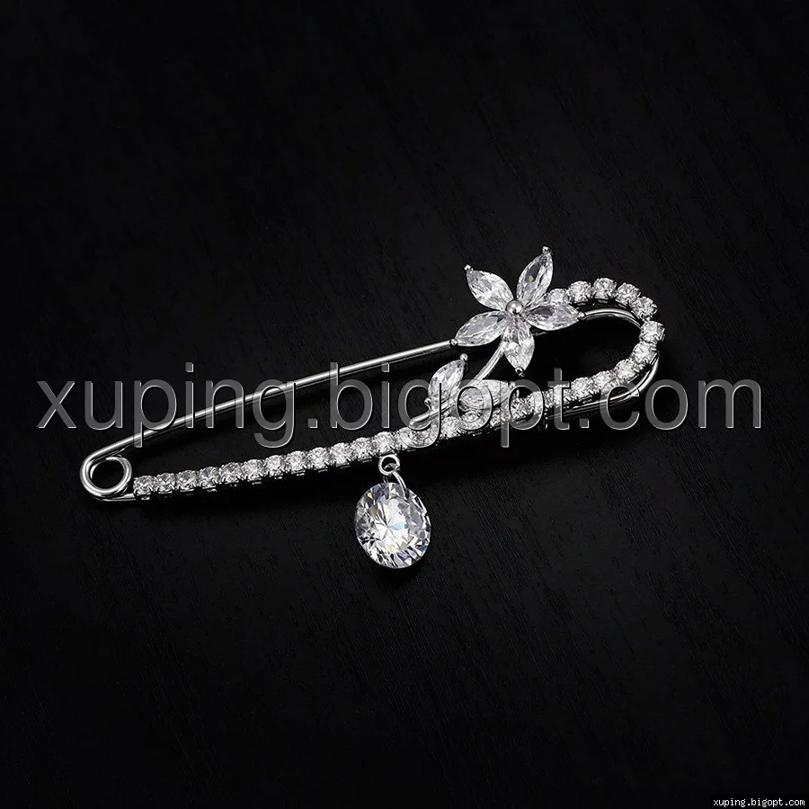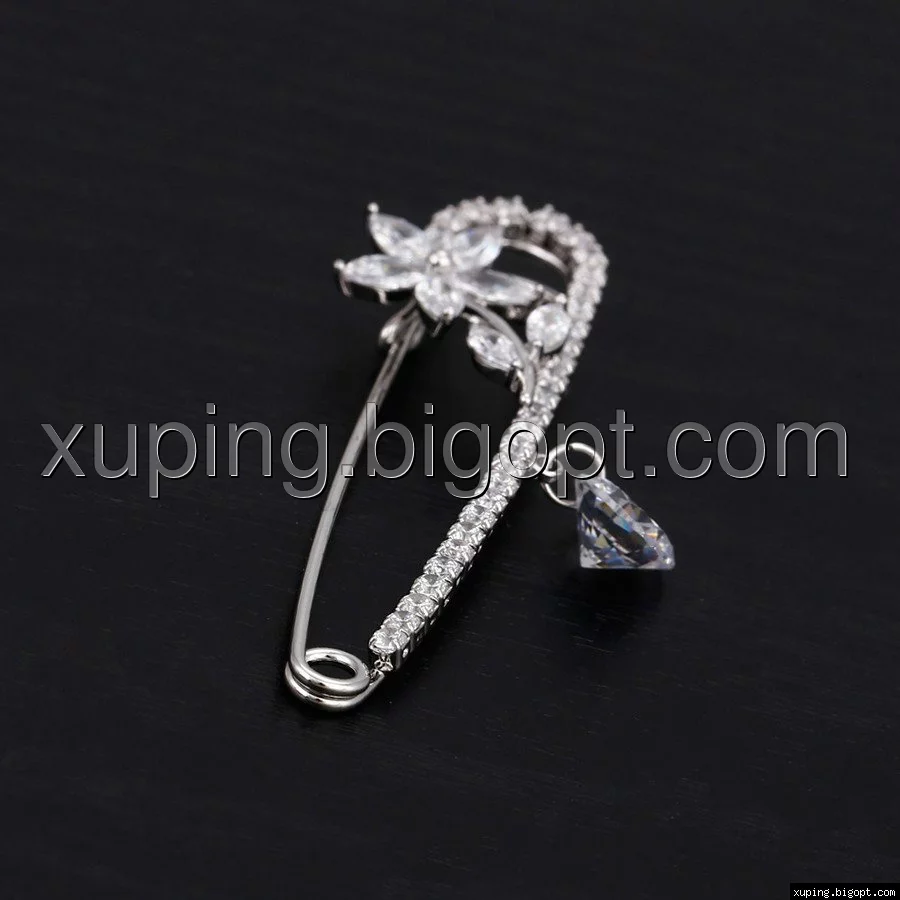 Шпилька родированная, Цветок с цирконием, Xuping