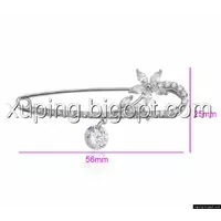 Брошь выполнена из медицинского сплава на основе титана с добавлением легирующих елементов, с целью улучшения каких-либо ее свойств, например коррозионной стойкости или прочности. Такой сплав не вызывает аллергии, не вступает в реакцию с потом человека, не меняет свои свойства под воздействием соленой воды и солнца. Поверхность цепочки покрыта родием чтобы придать ей ярко-белый цвет и дополнительно защитить от повреждений .