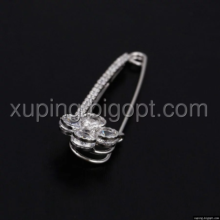 Брошь выполнена из медицинского сплава на основе титана с добавлением легирующих елементов, с целью улучшения каких-либо ее свойств, например коррозионной стойкости или прочности. Такой сплав не вызывает аллергии, не вступает в реакцию с потом человека, не меняет свои свойства под воздействием соленой воды и солнца. Поверхность цепочки покрыта родием чтобы придать ей ярко-белый цвет и дополнительно защитить от повреждений .