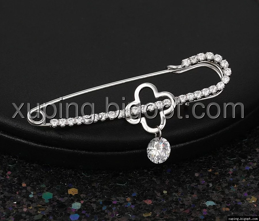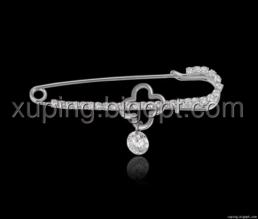 Брошь выполнена из медицинского сплава на основе титана с добавлением легирующих елементов, с целью улучшения каких-либо ее свойств, например коррозионной стойкости или прочности. Такой сплав не вызывает аллергии, не вступает в реакцию с потом человека, не меняет свои свойства под воздействием соленой воды и солнца. Поверхность цепочки покрыта родием чтобы придать ей ярко-белый цвет и дополнительно защитить от повреждений .