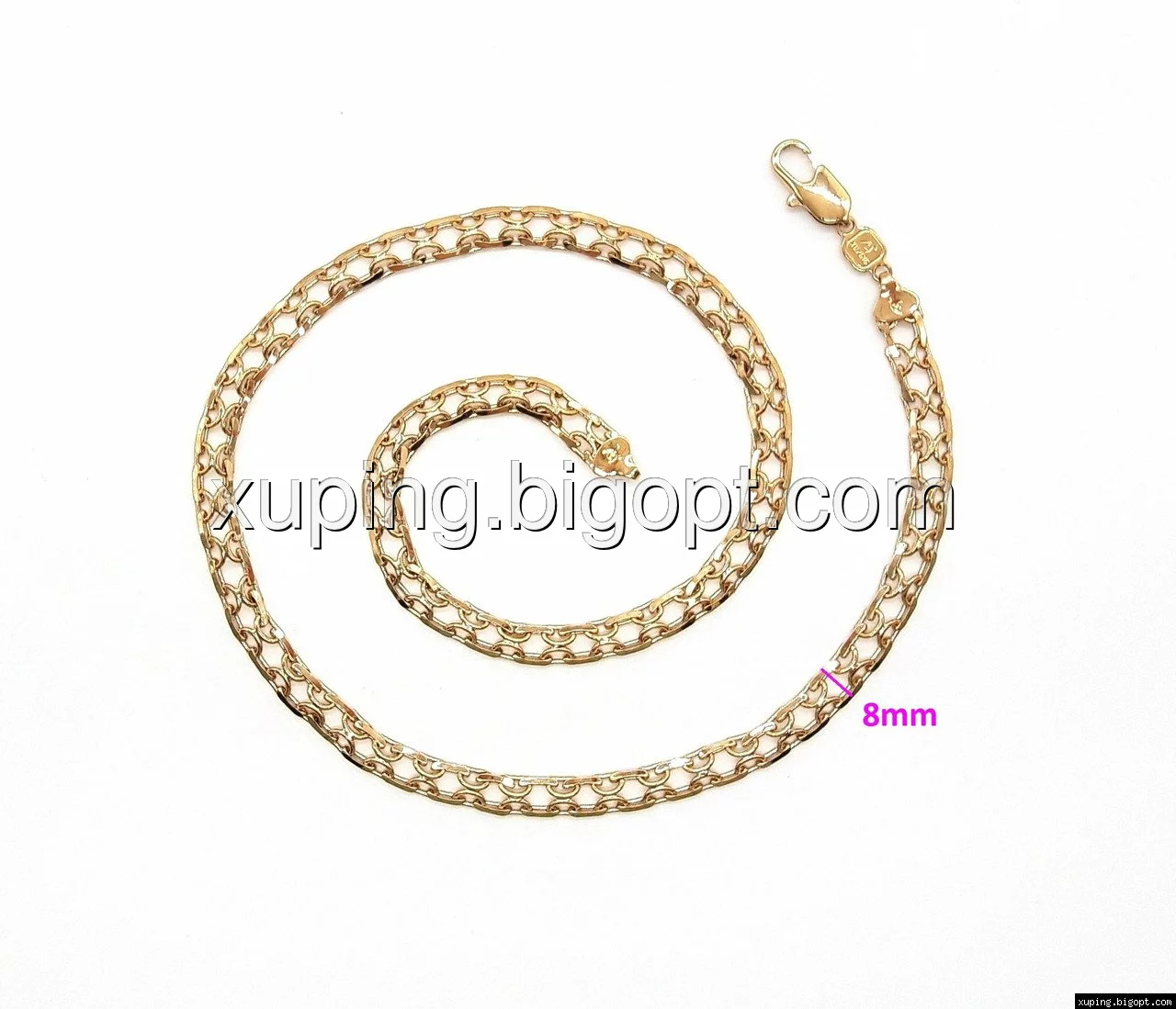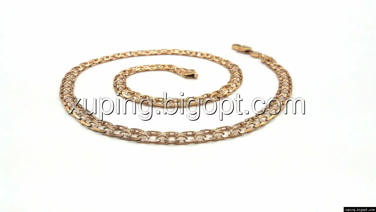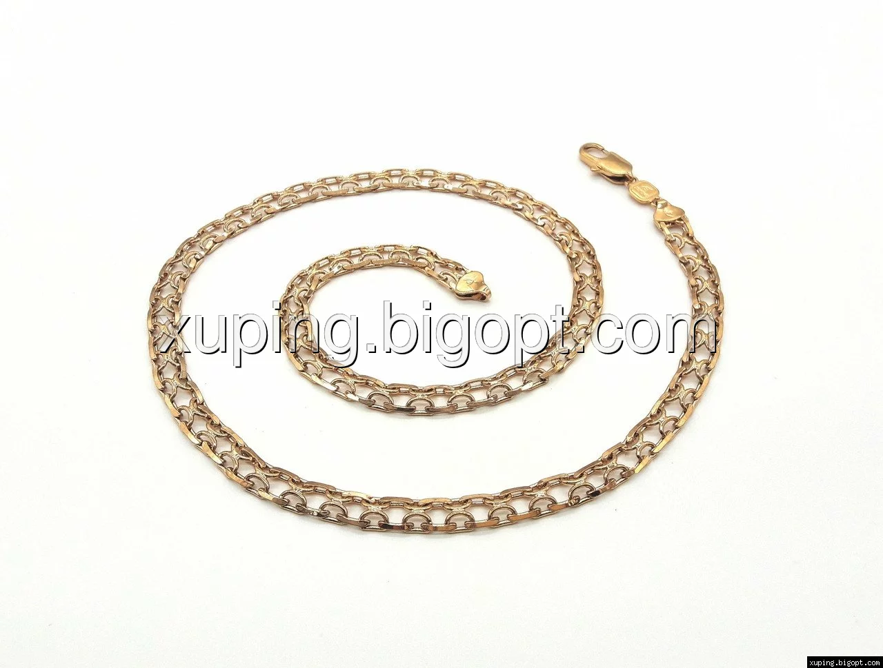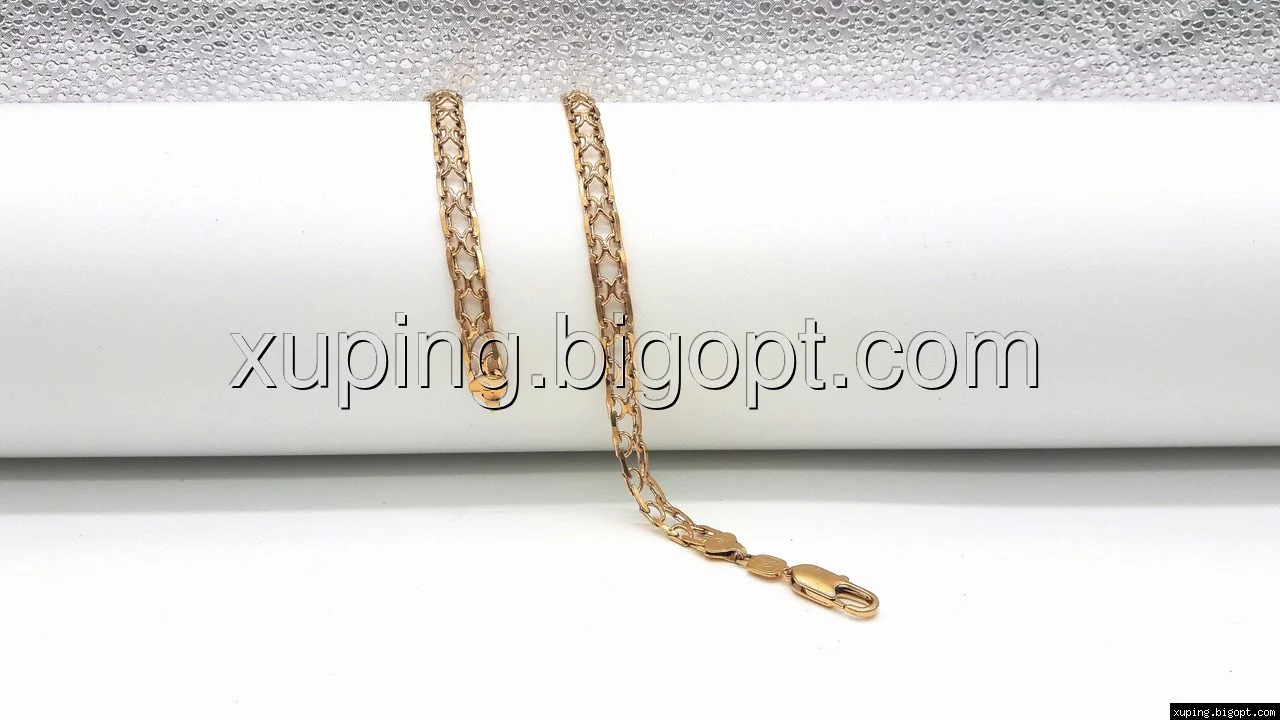 Цепочка выполнена из медицинского сплава, который  изготовляется на основе латуни. Сверху бижутерия покрыта позолотой  для того чтобы придать ей насыщенный цвет, яркий блеск и максимальное сходство с золотом. Кроме того, в качестве декора мастера используют цирконий, который крепится при помощи крапанов. Как известно этот камень широко применяется в ювелирном искусстве, так как он обладает восхитительным блеском и прочностью. Данная бижутерия представлена заводом-производителем марки «Xuping» – все изделия оригинальны и имеют одинаково высокое качество.