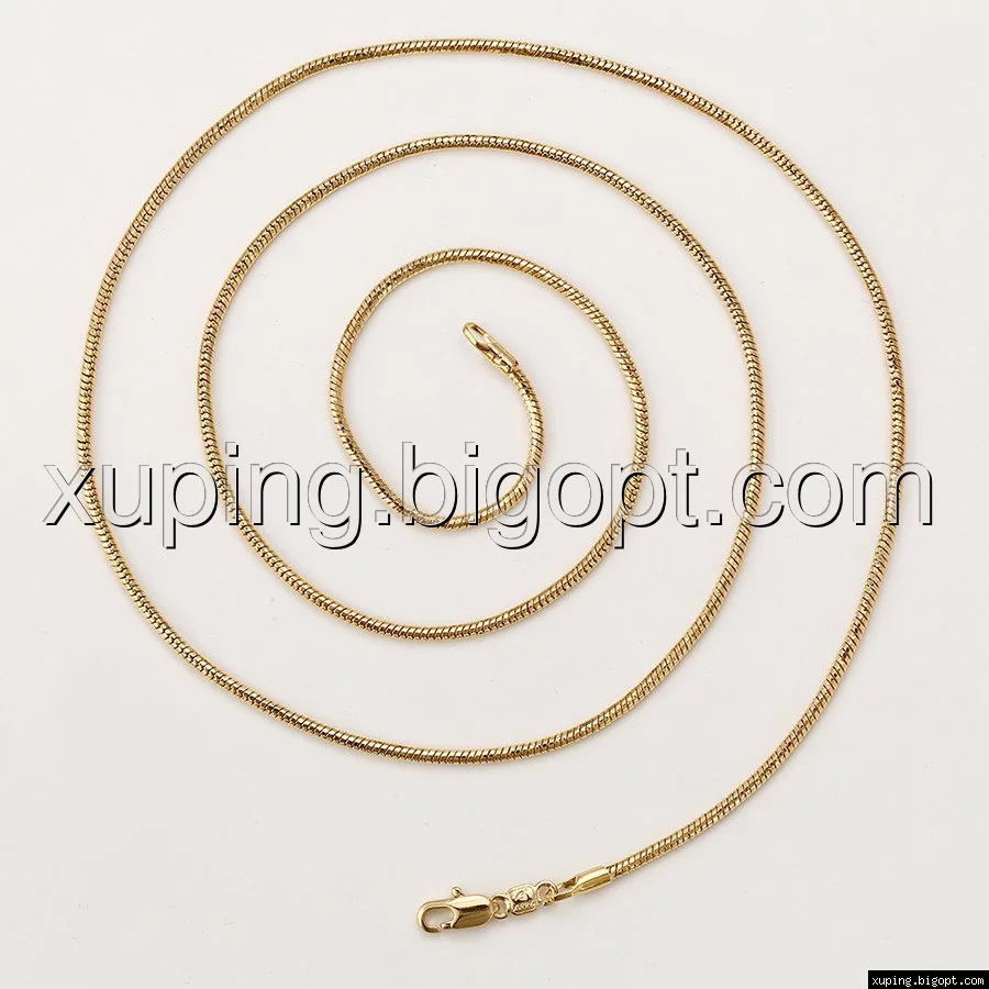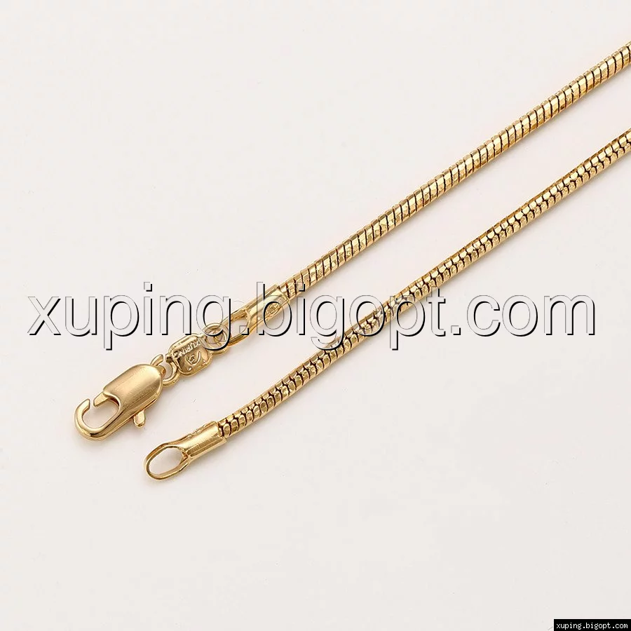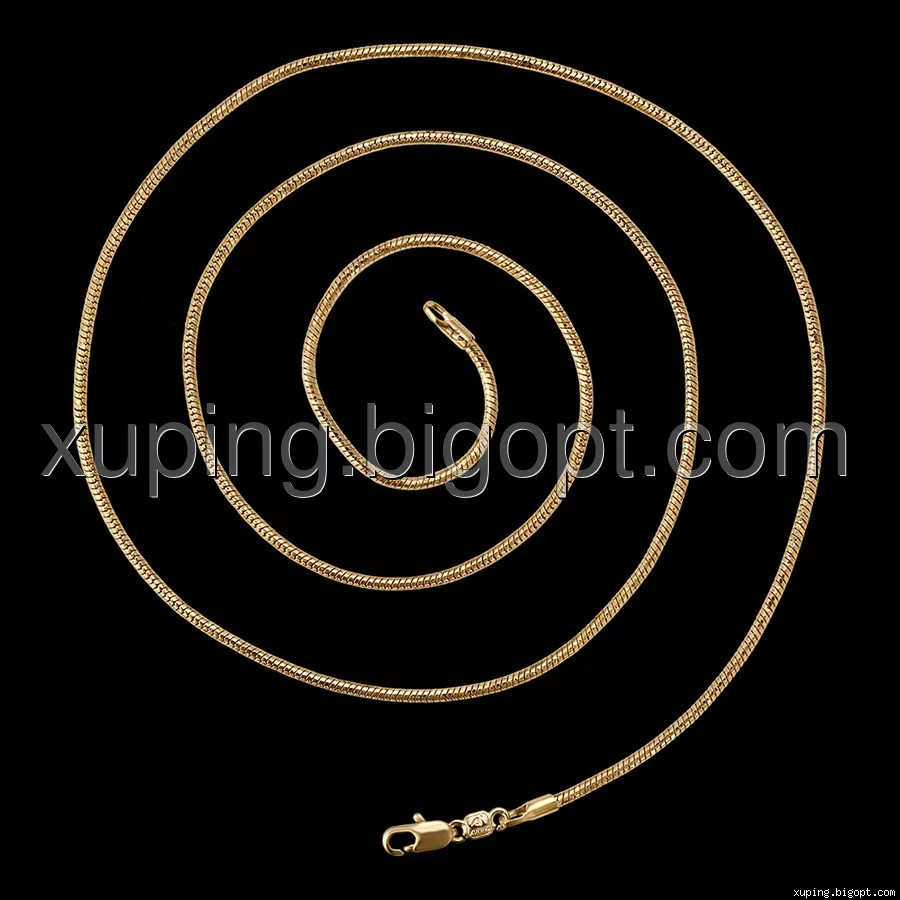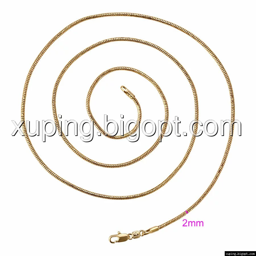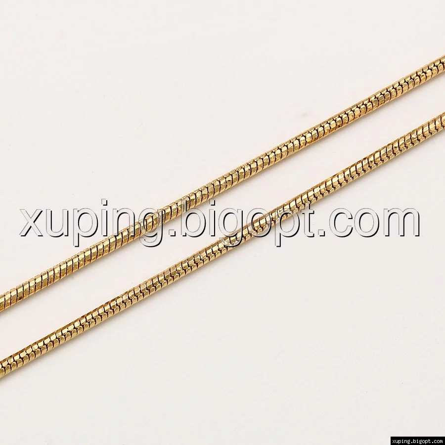 Цепочка выполнена из медицинского сплава на основе латуни с добавлением легирующих элементов, с целью улучшения каких-либо ее свойств, например коррозионной стойкости или прочности. Такой сплав не вызывает аллергии, не вступает в реакцию с потом человека, не меняет свои свойства под воздействием соленой воды и солнца. Поверхность цепочки покрыта золотом 18 карата.