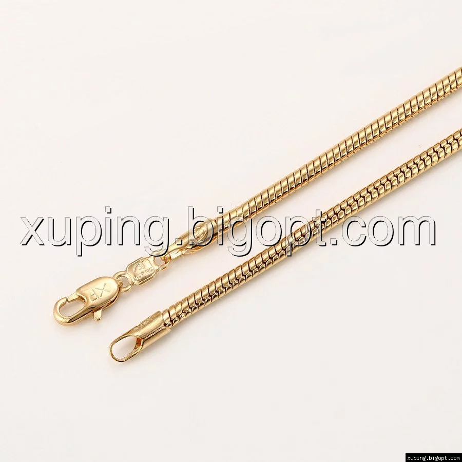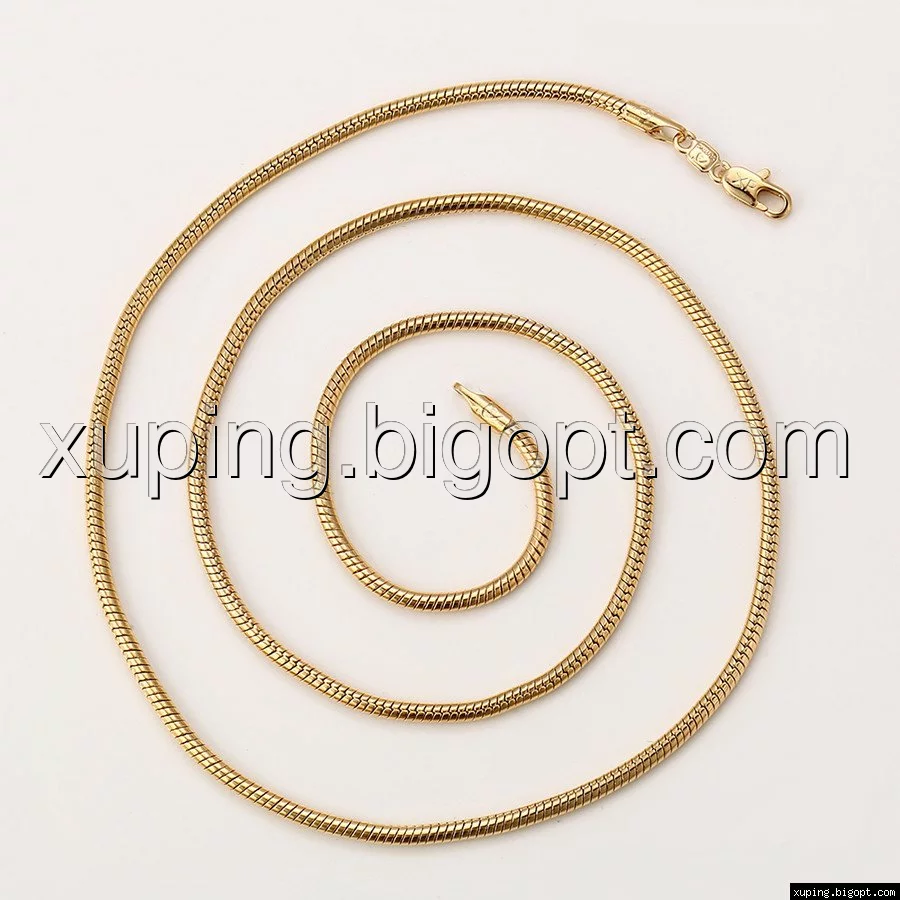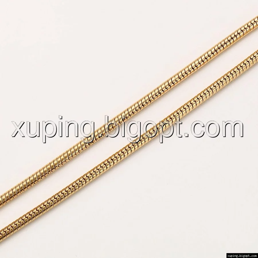 Цепочка выполнена из медицинского сплава на основе латуни с добавлением легирующих элементов, с целью улучшения каких-либо ее свойств, например коррозионной стойкости или прочности. Такой сплав не вызывает аллергии, не вступает в реакцию с потом человека, не меняет свои свойства под воздействием соленой воды и солнца. Поверхность цепочки покрыта золотом 18 карата.