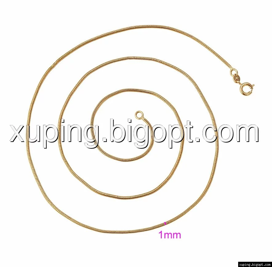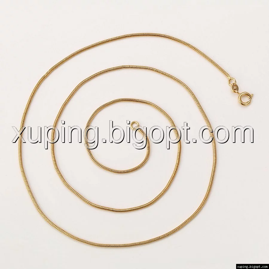 Цепочка выполнена из медицинского сплава на основе латуни с добавлением легирующих элементов, с целью улучшения каких-либо ее свойств, например коррозионной стойкости или прочности. Такой сплав не вызывает аллергии, не вступает в реакцию с потом человека, не меняет свои свойства под воздействием соленой воды и солнца. Поверхность цепочки покрыта золотом 18 карата.