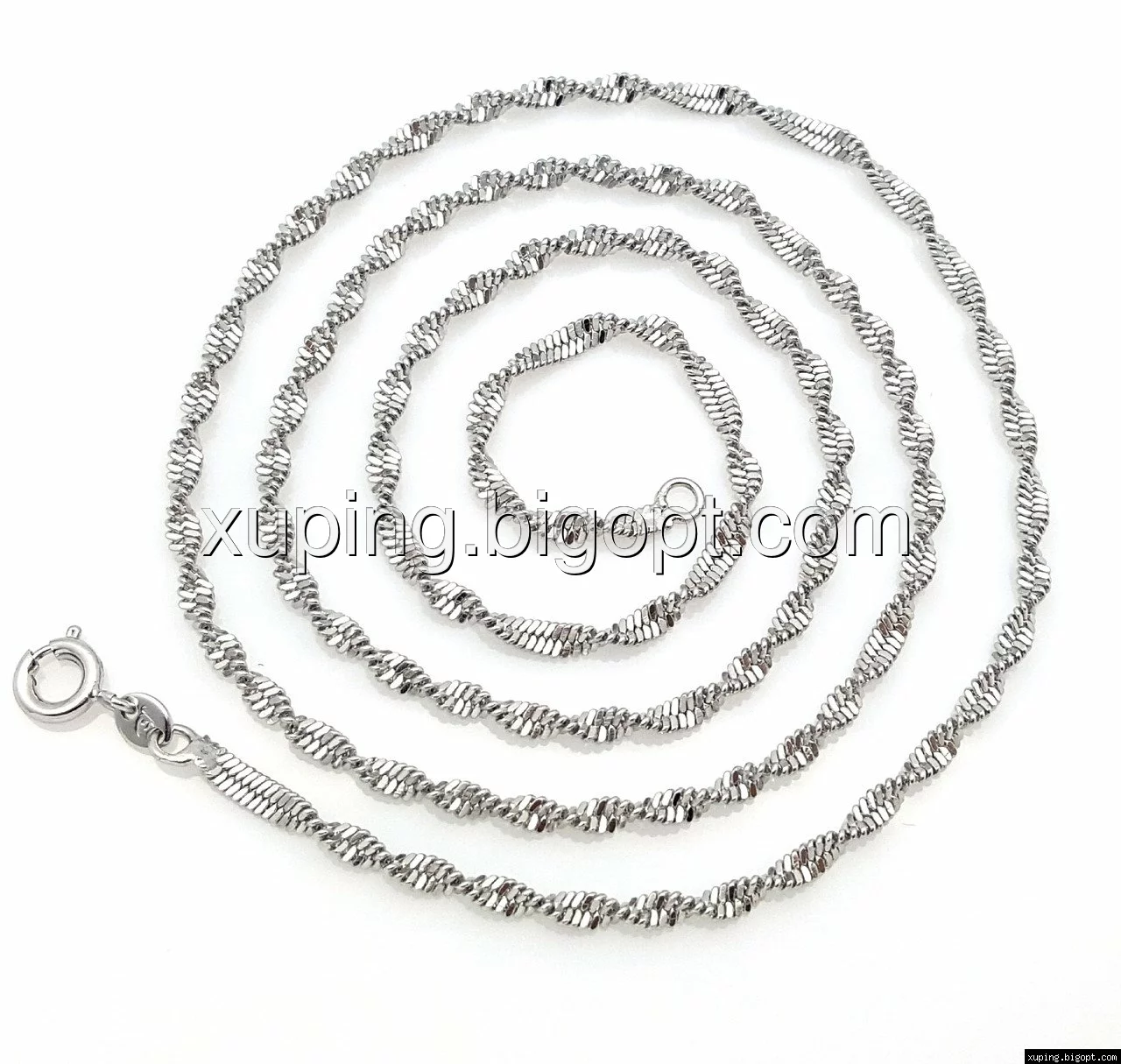 Цепочка выполнена из медицинского сплава на основе титана с добавлением легирующих елементов, с целью улучшения каких-либо ее свойств, например коррозионной стойкости или прочности. Такой сплав не вызывает аллергии, не вступает в реакцию с потом человека, не меняет свои свойства под воздействием соленой воды и солнца. Поверхность цепочки покрыта родием чтобы придать ей ярко-белый цвет и дополнительно защитить от повреждений .