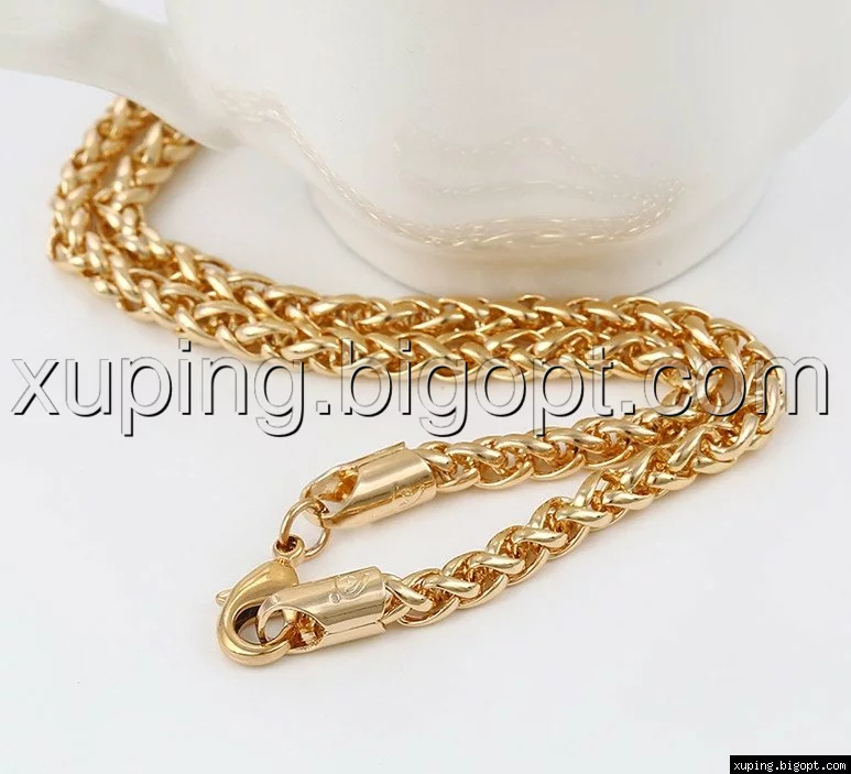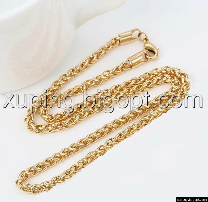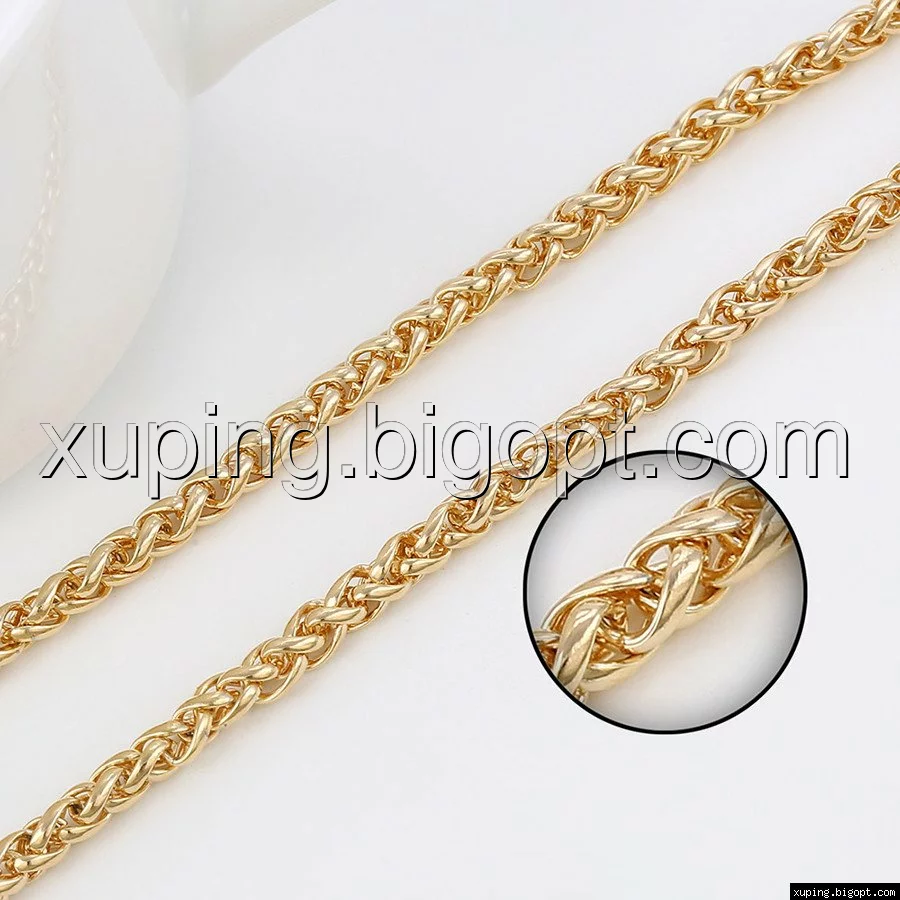 Цепочка выполнена из медицинского сплава на основе латуни с добавлением легирующих элементов, с целью улучшения каких-либо ее свойств, например коррозионной стойкости или прочности. Такой сплав не вызывает аллергии, не вступает в реакцию с потом человека, не меняет свои свойства под воздействием соленой воды и солнца. Поверхность цепочки покрыта золотом 18 карата.