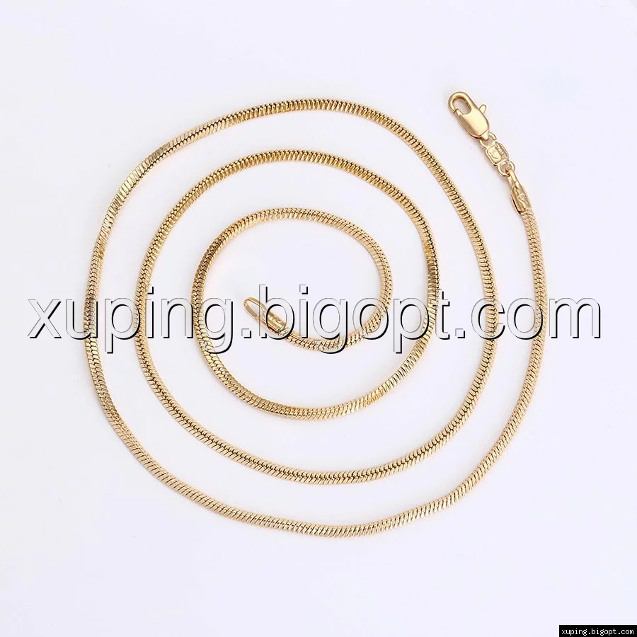 Цепочка выполнена из медицинского сплава, который  изготовляется на основе латуни. Сверху бижутерия покрыта позолотой  для того чтобы придать ей насыщенный цвет, яркий блеск и максимальное сходство с золотом. Кроме того, в качестве декора мастера используют цирконий, который крепится при помощи крапанов. Как известно этот камень широко применяется в ювелирном искусстве, так как он обладает восхитительным блеском и прочностью. Данная бижутерия представлена заводом-производителем марки «Xuping» – все изделия оригинальны и имеют одинаково высокое качество.