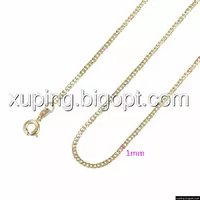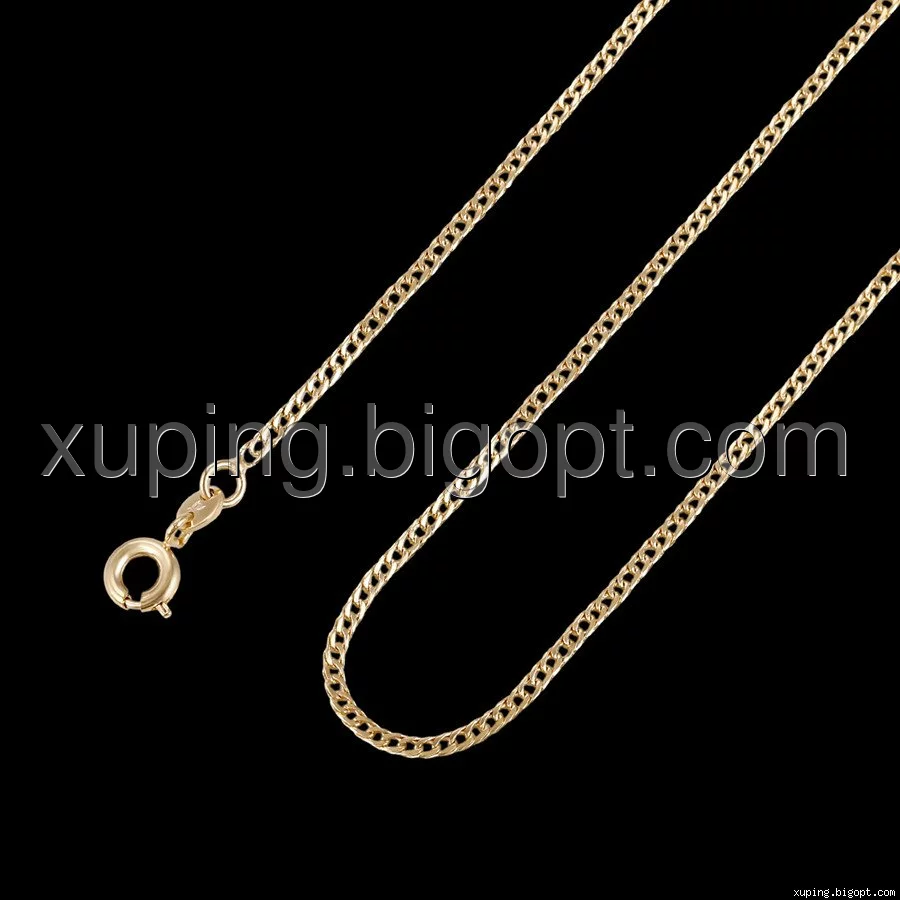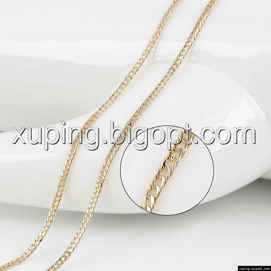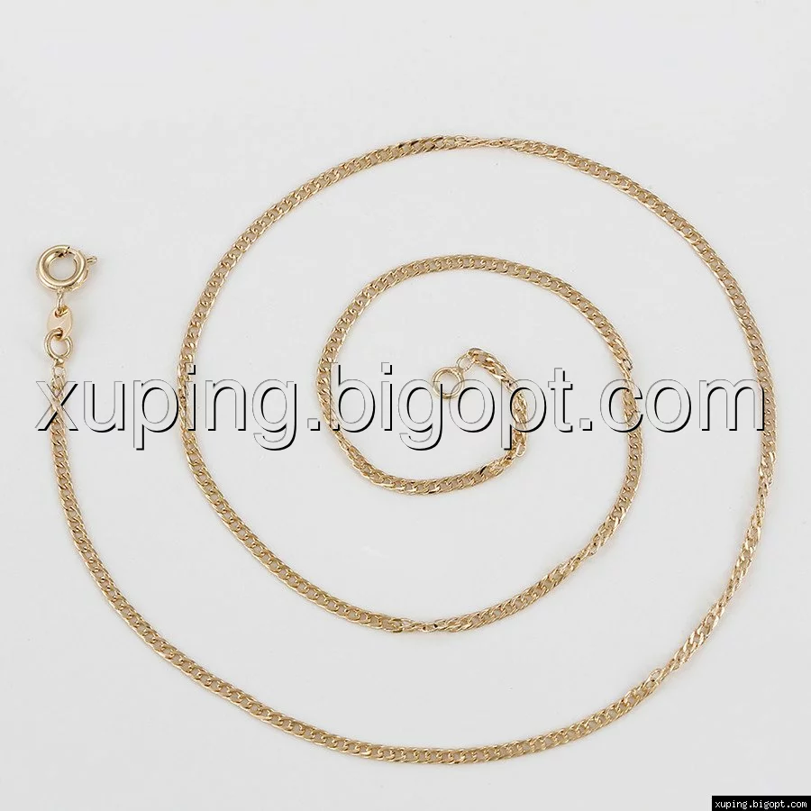 Цепочка выполнена из медицинского сплава на основе латуни с добавлением легирующих элементов, с целью улучшения каких-либо ее свойств, например коррозионной стойкости или прочности. Такой сплав не вызывает аллергии, не вступает в реакцию с потом человека, не меняет свои свойства под воздействием соленой воды и солнца. Поверхность цепочки покрыта золотом 18 карата.