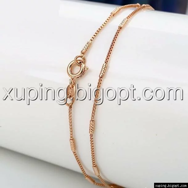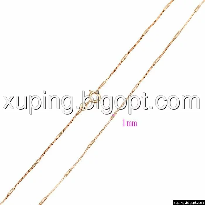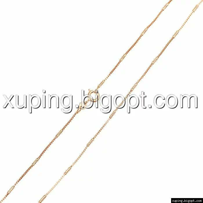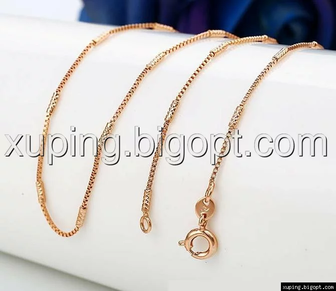 Цепочка выполнена из медицинского сплава на основе латуни с добавлением легирующих елементов, с целью улучшения каких-либо ее свойств, например коррозионной стойкости или прочности. Такой сплав не вызывает аллергии, не вступает в реакцию с потом человека, не меняет свои свойства под воздействием соленой воды и солнца. Поверхность цепочки покрыта золотом 14 карата.