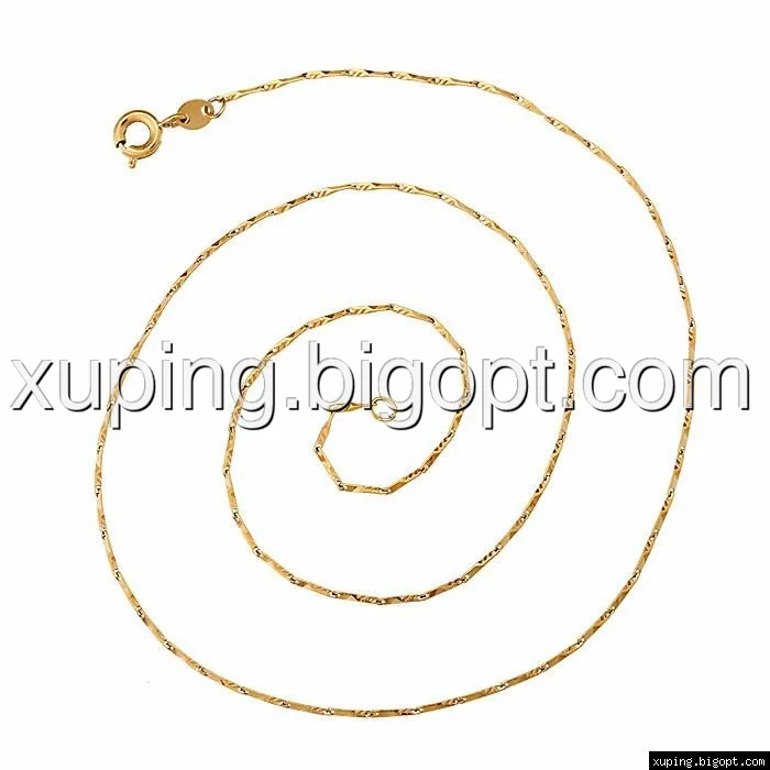 Цепочка выполнена из медицинского сплава на основе латуни с добавлением легирующих елементов, с целью улучшения каких-либо ее свойств, например коррозионной стойкости или прочности. Такой сплав не вызывает аллергии, не вступает в реакцию с потом человека, не меняет свои свойства под воздействием соленой воды и солнца. Поверхность цепочки покрыта золотом 18 карата.
