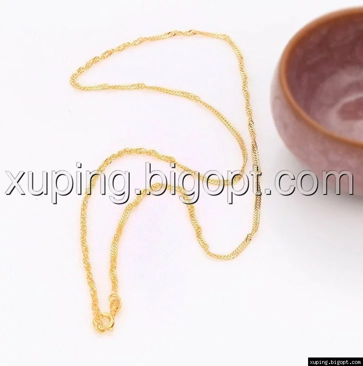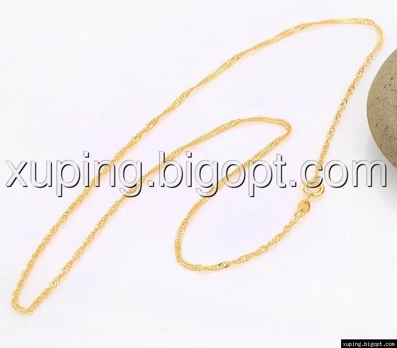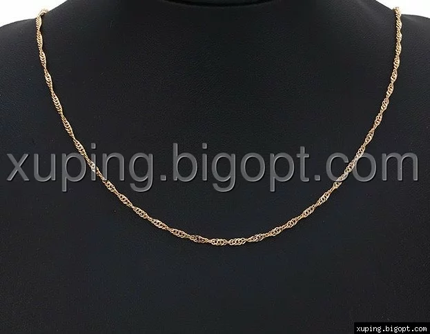Цепочка выполнена из медицинского сплава на основе латуни с добавлением легирующих елементов, с целью улучшения каких-либо ее свойств, например коррозионной стойкости или прочности. Такой сплав не вызывает аллергии, не вступает в реакцию с потом человека, не меняет свои свойства под воздействием соленой воды и солнца. Поверхность цепочки покрыта золотом 18 карата.