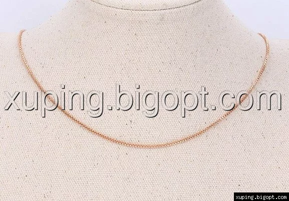 Цепочка выполнена из медицинского сплава на основе латуни с добавлением легирующих елементов, с целью улучшения каких-либо ее свойств, например коррозионной стойкости или прочности. Такой сплав не вызывает аллергии, не вступает в реакцию с потом человека, не меняет свои свойства под воздействием соленой воды и солнца. Поверхность цепочки покрыта золотом 24 карата.