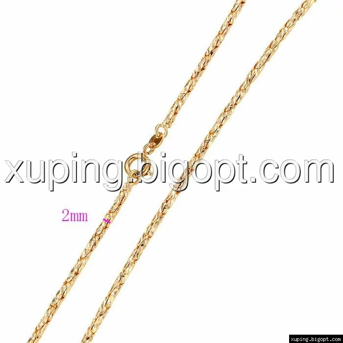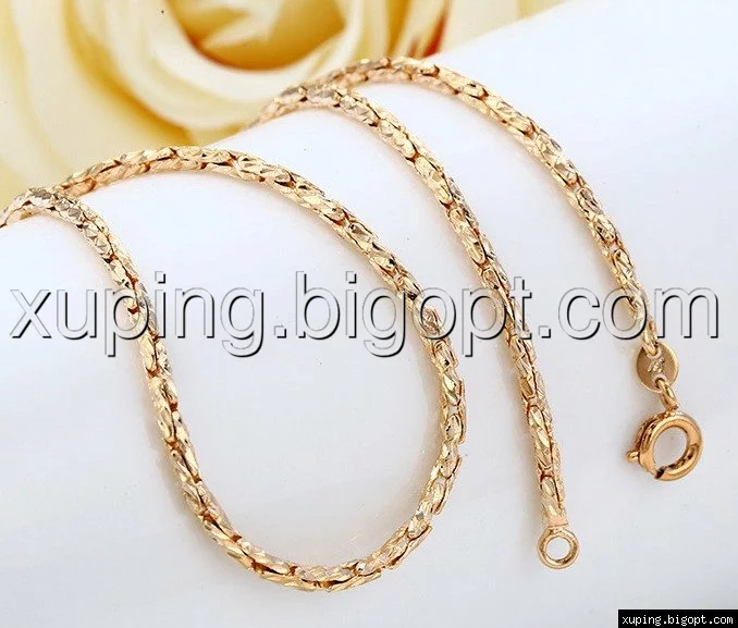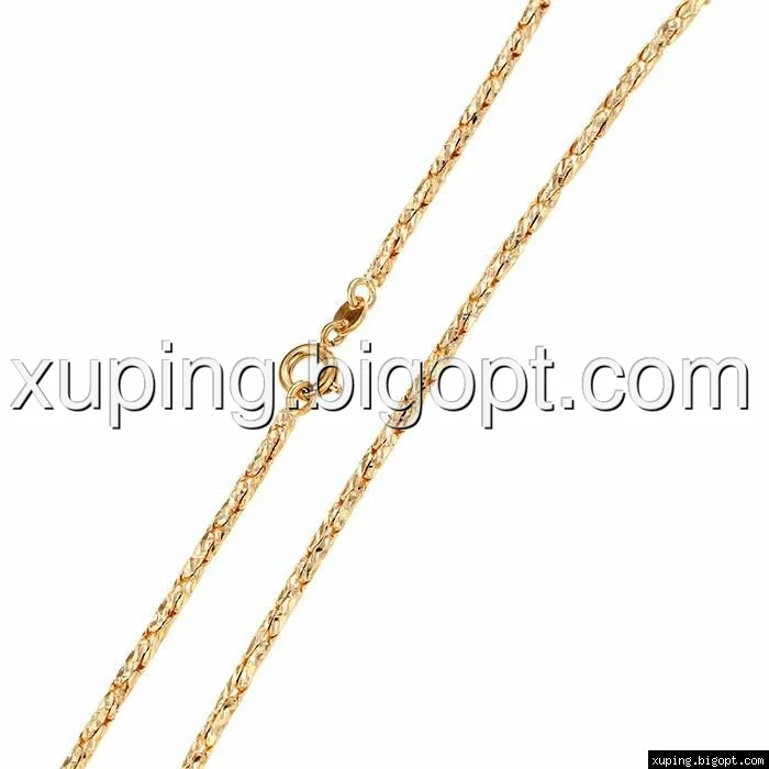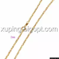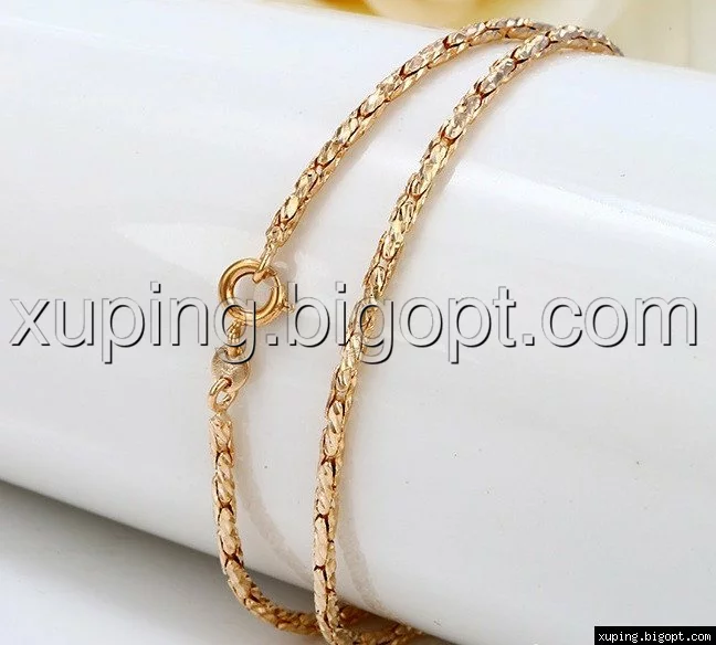 Цепочка выполнена из медицинского сплава на основе латуни с добавлением легирующих елементов, с целью улучшения каких-либо ее свойств, например коррозионной стойкости или прочности. Такой сплав не вызывает аллергии, не вступает в реакцию с потом человека, не меняет свои свойства под воздействием соленой воды и солнца. Поверхность цепочки покрыта золотом 18 карата.