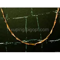 Цепочка выполнена из медицинского сплава на основе латуни с добавлением легирующих елементов, с целью улучшения каких-либо ее свойств, например коррозионной стойкости или прочности. Такой сплав не вызывает аллергии, не вступает в реакцию с потом человека, не меняет свои свойства под воздействием соленой воды и солнца. Поверхность цепочки покрыта золотом 18 карата.