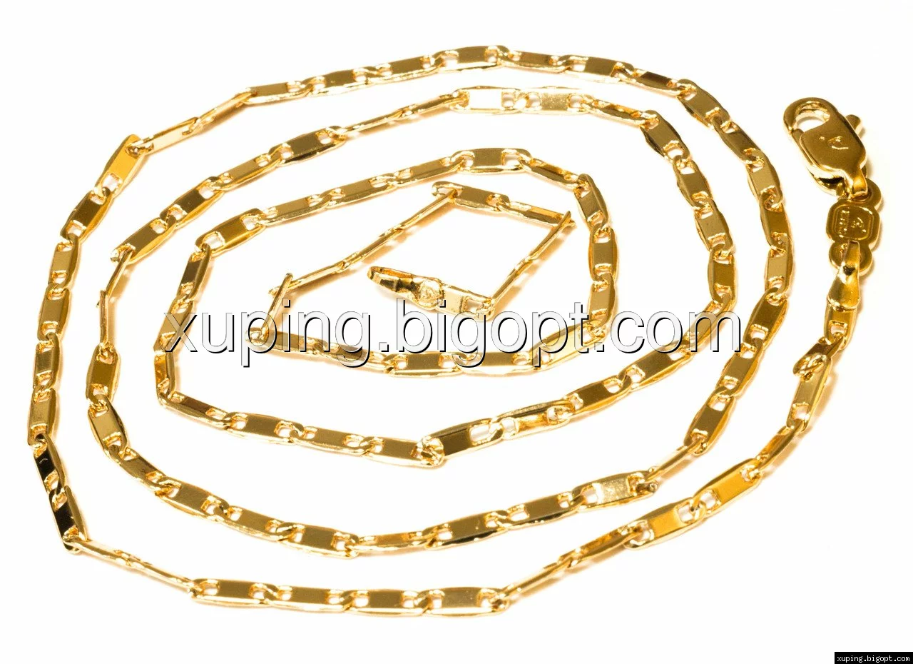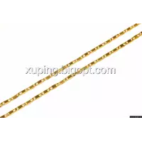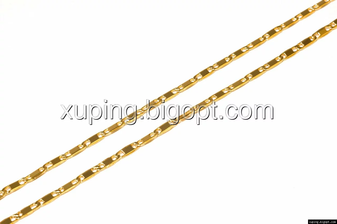 Цепочка выполнена из медицинского сплава на основе латуни с добавлением легирующих елементов, с целью улучшения каких-либо ее свойств, например коррозионной стойкости или прочности. Такой сплав не вызывает аллергии, не вступает в реакцию с потом человека, не меняет свои свойства под воздействием соленой воды и солнца. Поверхность цепочки покрыта золотом 18 карата.