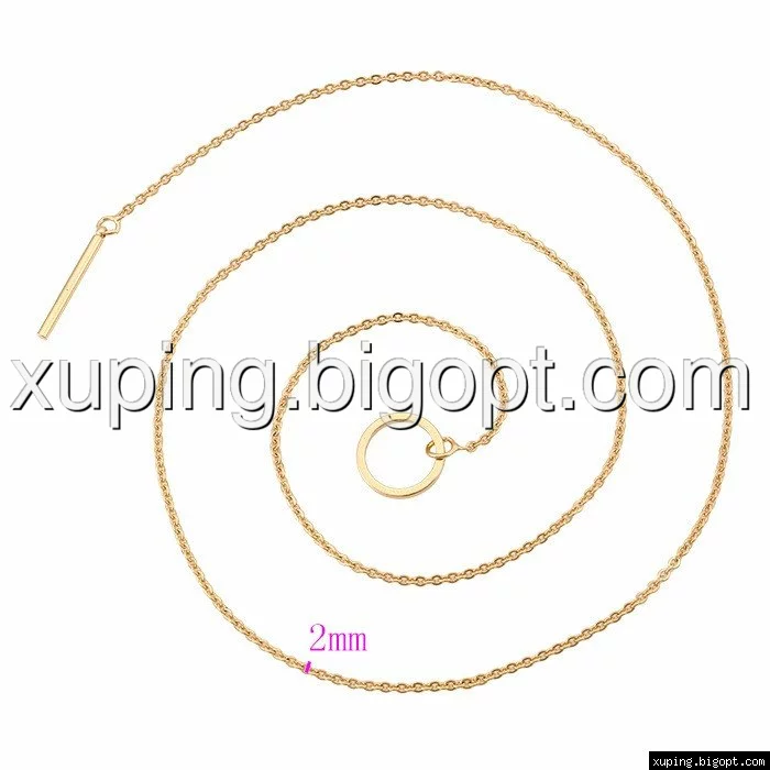 Цепочка выполнена из медицинского сплава на основе латуни с добавлением легирующих елементов, с целью улучшения каких-либо ее свойств, например коррозионной стойкости или прочности. Такой сплав не вызывает аллергии, не вступает в реакцию с потом человека, не меняет свои свойства под воздействием соленой воды и солнца. Поверхность цепочки покрыта золотом 18 карата.