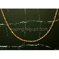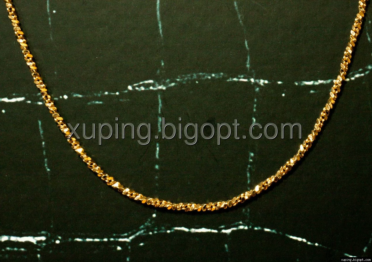 Цепочка выполнена из медицинского сплава на основе латуни с добавлением легирующих елементов, с целью улучшения каких-либо ее свойств, например коррозионной стойкости или прочности. Такой сплав не вызывает аллергии, не вступает в реакцию с потом человека, не меняет свои свойства под воздействием соленой воды и солнца. Поверхность цепочки покрыта золотом 18 карата.
