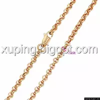 Цепочка выполнена из медицинского сплава на основе латуни с добавлением легирующих елементов, с целью улучшения каких-либо ее свойств, например коррозионной стойкости или прочности. Такой сплав не вызывает аллергии, не вступает в реакцию с потом человека, не меняет свои свойства под воздействием соленой воды и солнца. Поверхность цепочки покрыта золотом 24 карата.
