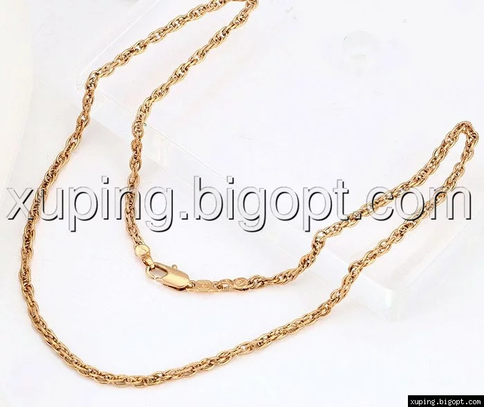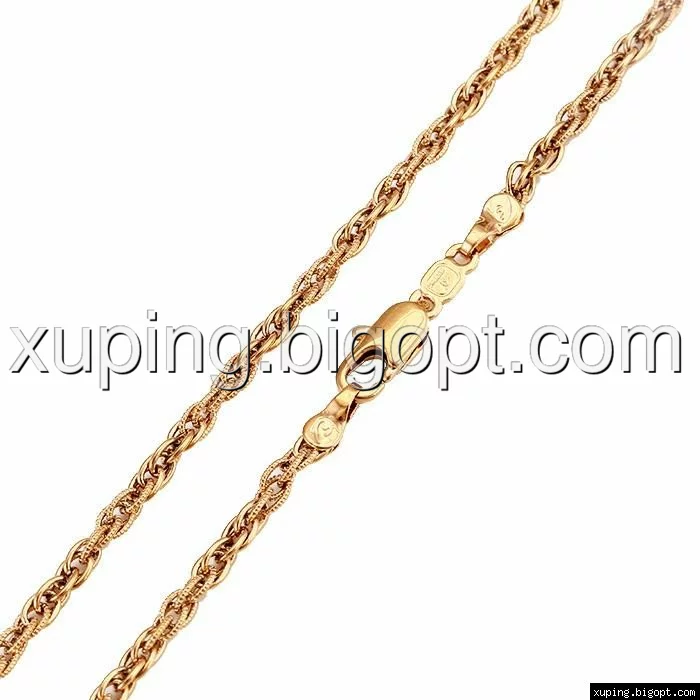 Цепочка выполнена из медицинского сплава на основе латуни с добавлением легирующих елементов, с целью улучшения каких-либо ее свойств, например коррозионной стойкости или прочности. Такой сплав не вызывает аллергии, не вступает в реакцию с потом человека, не меняет свои свойства под воздействием соленой воды и солнца. Поверхность цепочки покрыта золотом 24 карата.