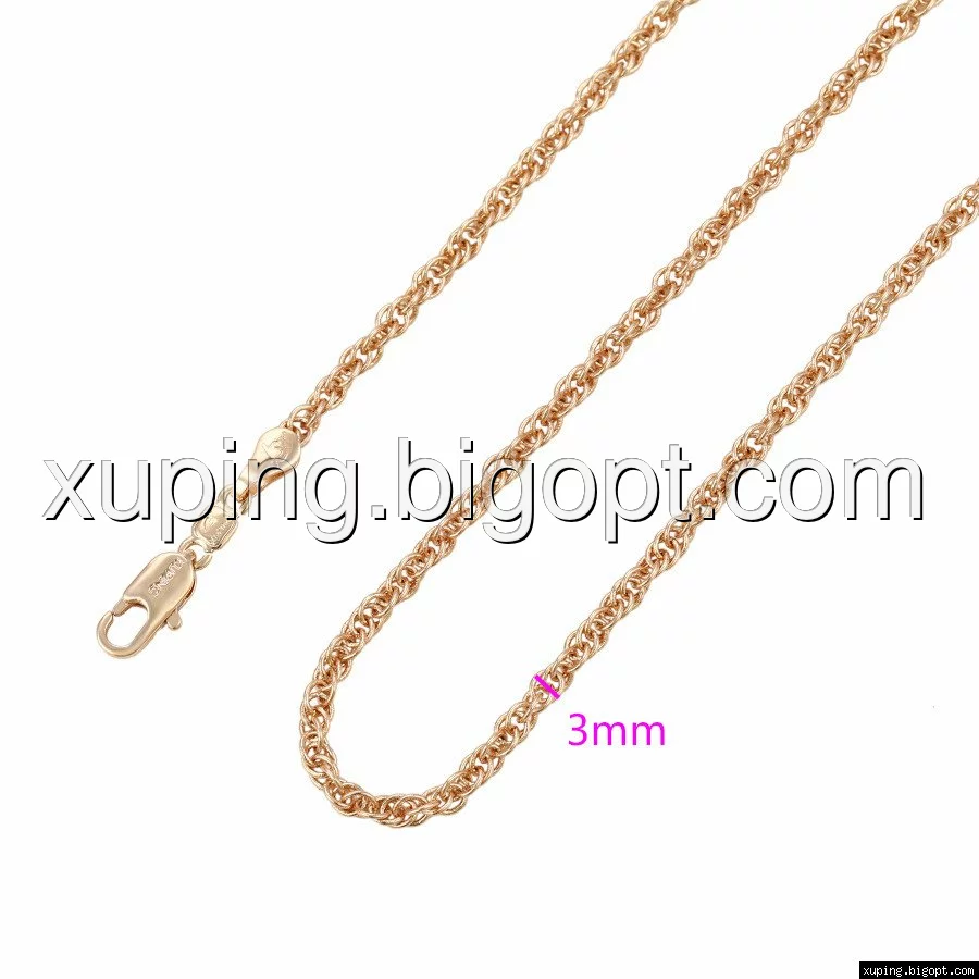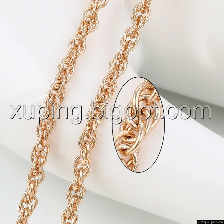 Цепочка выполнена из медицинского сплава на основе латуни с добавлением легирующих елементов, с целью улучшения каких-либо ее свойств, например коррозионной стойкости или прочности. Такой сплав не вызывает аллергии, не вступает в реакцию с потом человека, не меняет свои свойства под воздействием соленой воды и солнца. Поверхность цепочки покрыта золотом 14 карата.