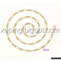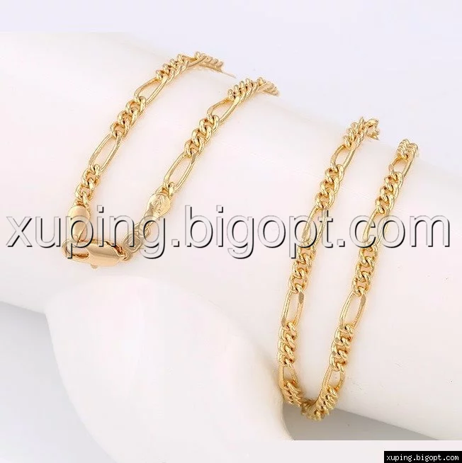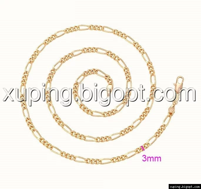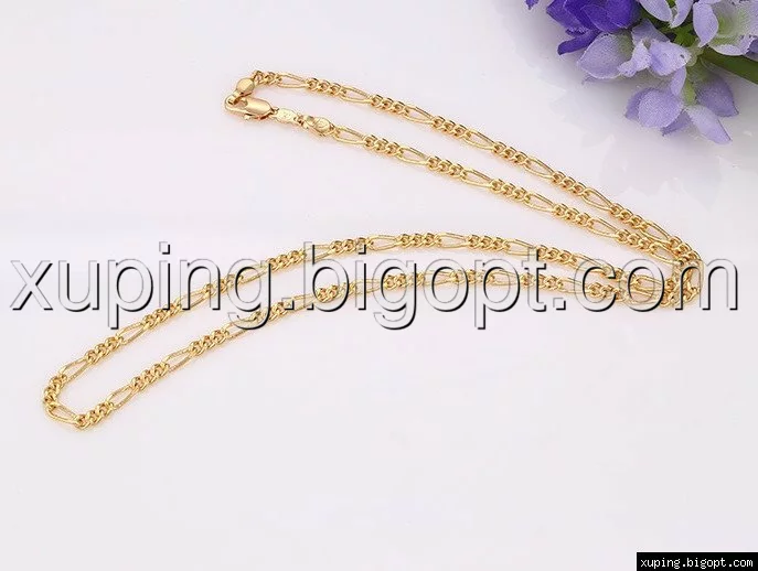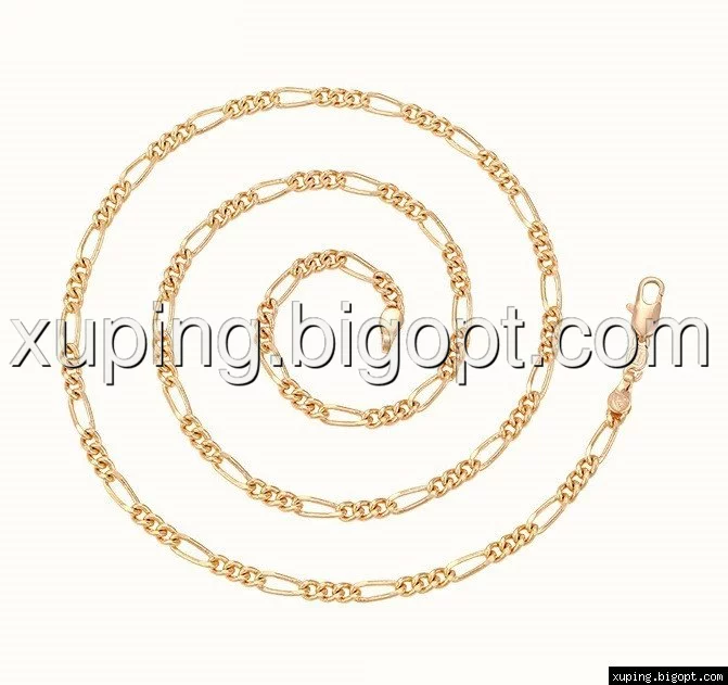 Цепочка выполнена из медицинского сплава на основе латуни с добавлением легирующих елементов, с целью улучшения каких-либо ее свойств, например коррозионной стойкости или прочности. Такой сплав не вызывает аллергии, не вступает в реакцию с потом человека, не меняет свои свойства под воздействием соленой воды и солнца. Поверхность цепочки покрыта золотом 18 карата.