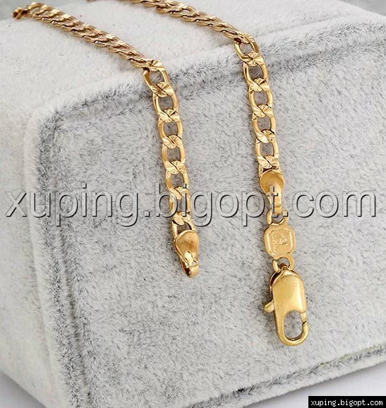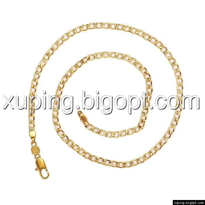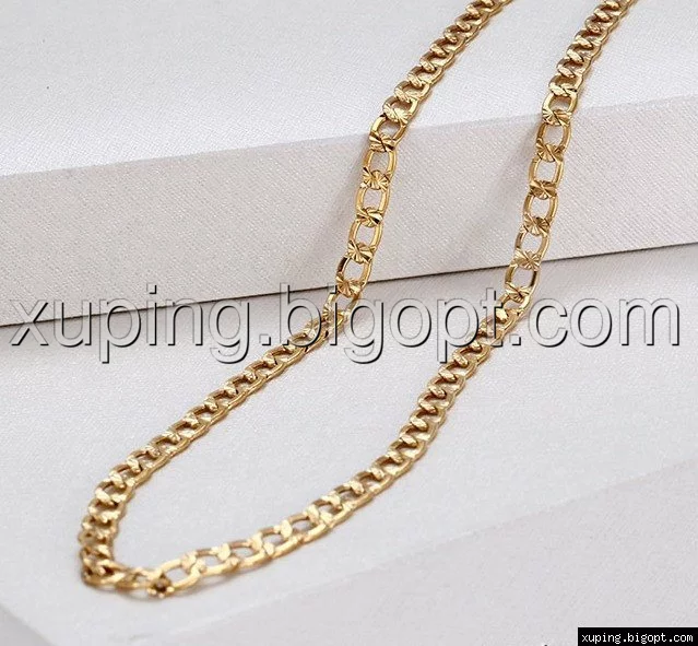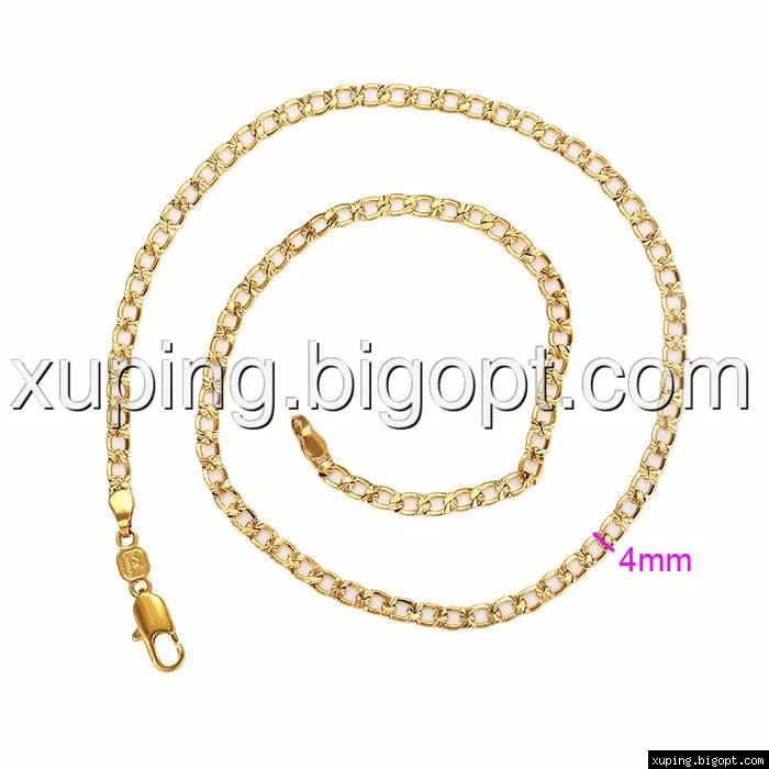 Цепочка выполнена из медицинского сплава на основе латуни с добавлением легирующих елементов, с целью улучшения каких-либо ее свойств, например коррозионной стойкости или прочности. Такой сплав не вызывает аллергии, не вступает в реакцию с потом человека, не меняет свои свойства под воздействием соленой воды и солнца. Поверхность цепочки покрыта золотом 18 карата.