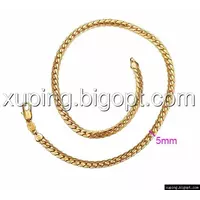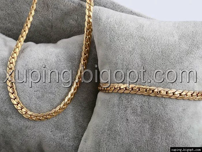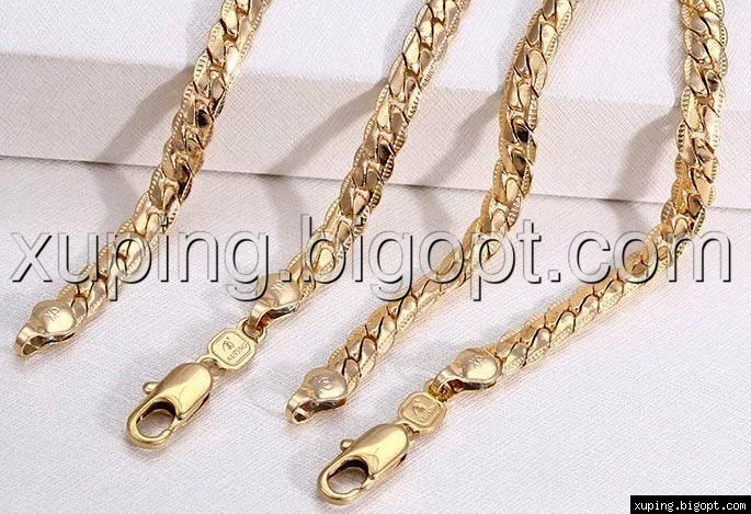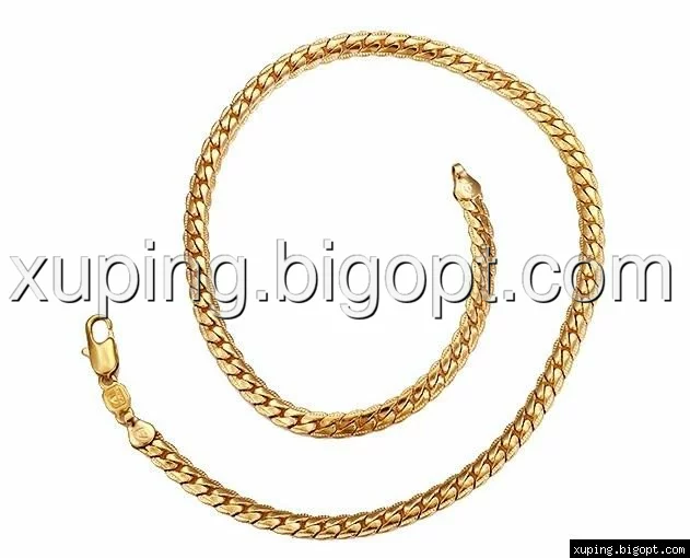 Цепочка выполнена из медицинского сплава на основе латуни с добавлением легирующих елементов, с целью улучшения каких-либо ее свойств, например коррозионной стойкости или прочности. Такой сплав не вызывает аллергии, не вступает в реакцию с потом человека, не меняет свои свойства под воздействием соленой воды и солнца. Поверхность цепочки покрыта золотом 18 карата.