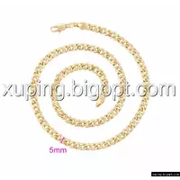 Цепочка выполнена из медицинского сплава на основе латуни с добавлением легирующих елементов, с целью улучшения каких-либо ее свойств, например коррозионной стойкости или прочности. Такой сплав не вызывает аллергии, не вступает в реакцию с потом человека, не меняет свои свойства под воздействием соленой воды и солнца. Поверхность цепочки покрыта золотом 18 карата.