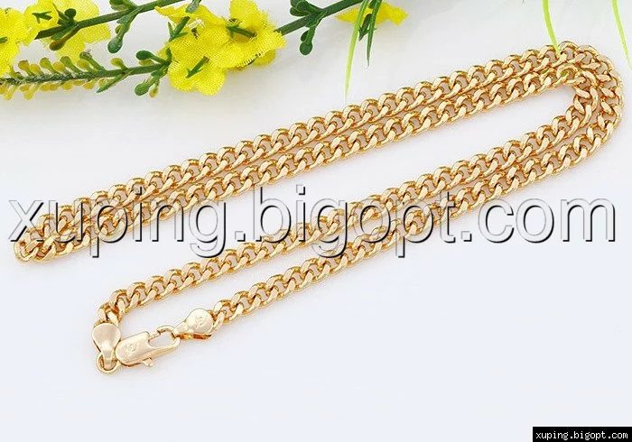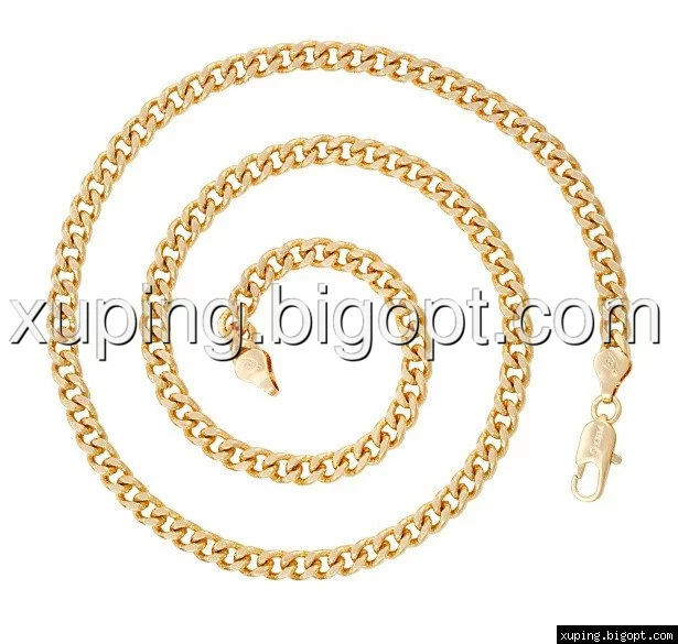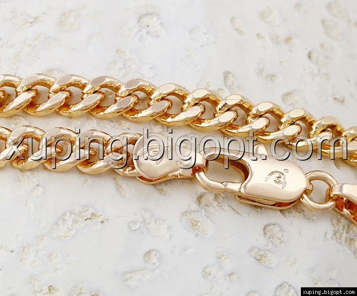 Цепочка выполнена из медицинского сплава на основе латуни с добавлением легирующих елементов, с целью улучшения каких-либо ее свойств, например коррозионной стойкости или прочности. Такой сплав не вызывает аллергии, не вступает в реакцию с потом человека, не меняет свои свойства под воздействием соленой воды и солнца. Поверхность цепочки покрыта золотом 18карата.