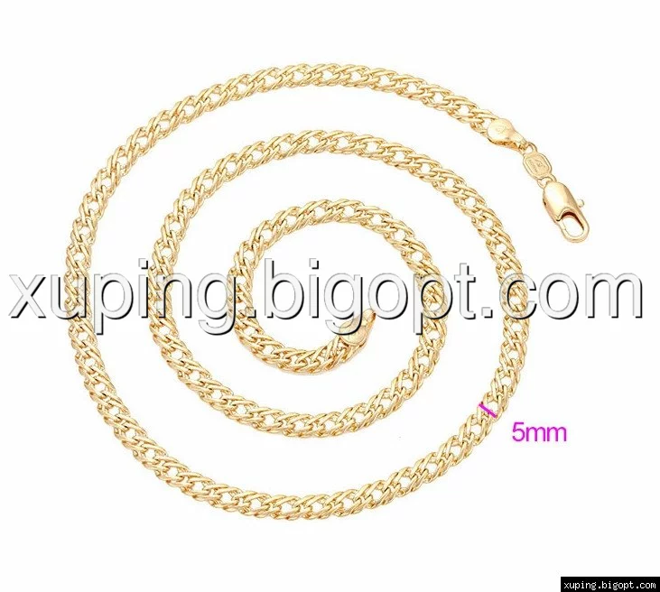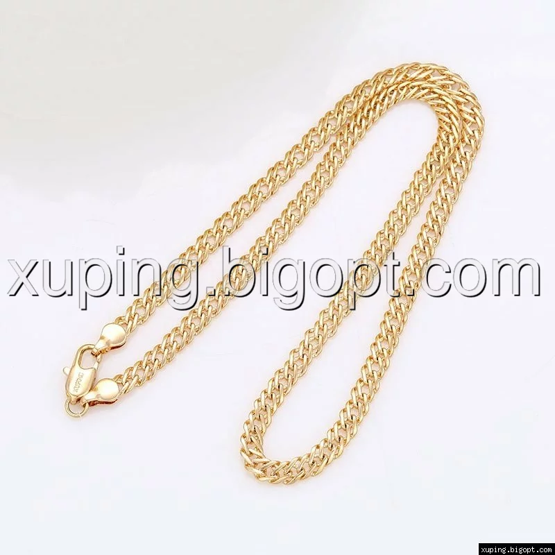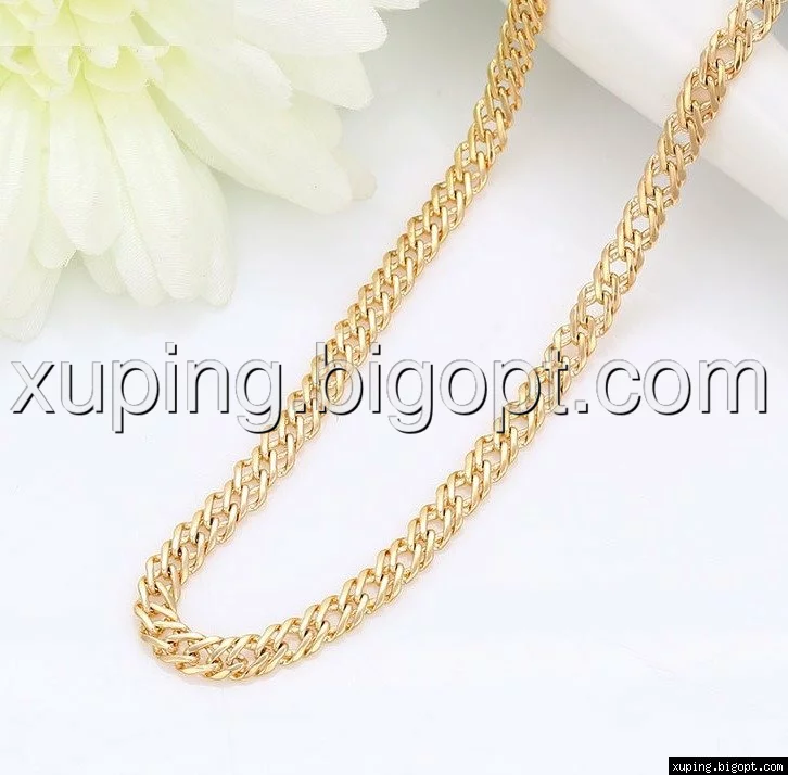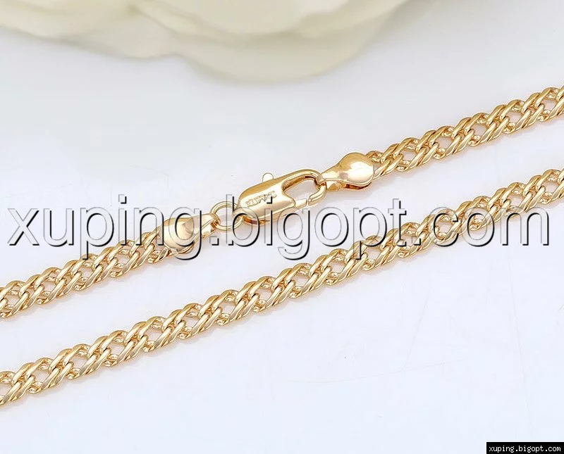 Цепочка выполнена из медицинского сплава на основе латуни с добавлением легирующих елементов, с целью улучшения каких-либо ее свойств, например коррозионной стойкости или прочности. Такой сплав не вызывает аллергии, не вступает в реакцию с потом человека, не меняет свои свойства под воздействием соленой воды и солнца. Поверхность цепочки покрыта золотом 18 карата.
