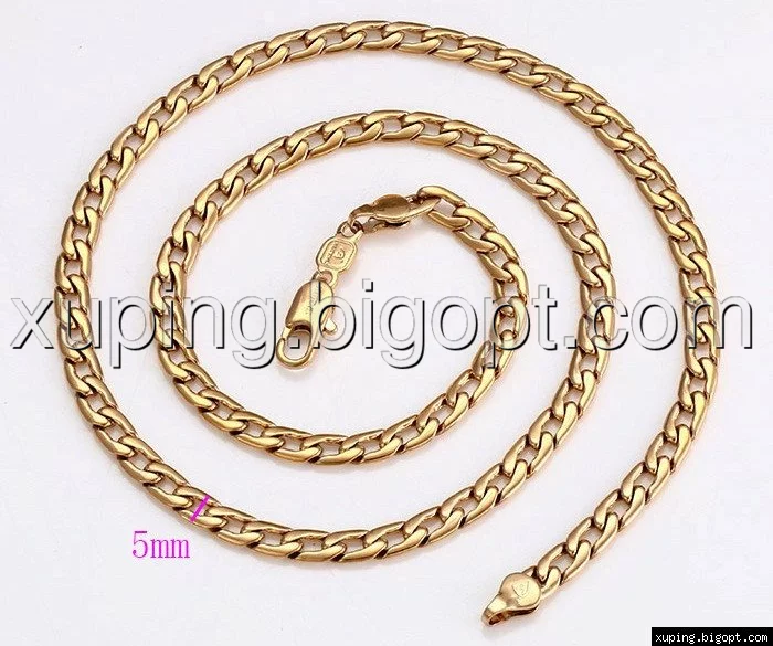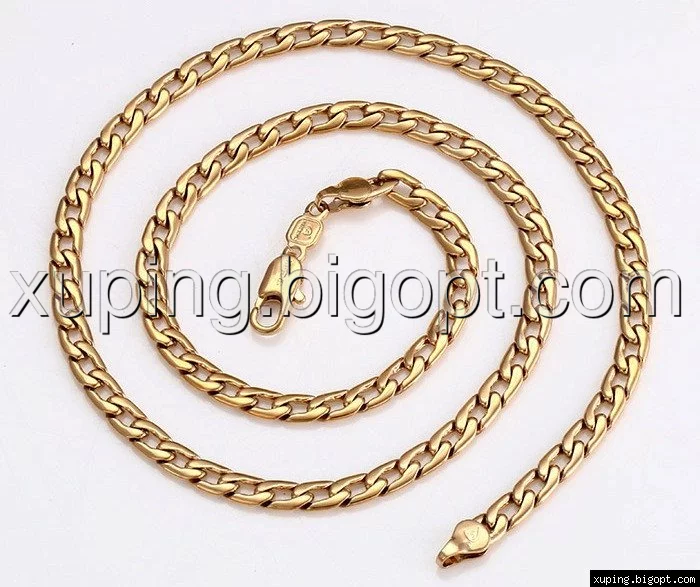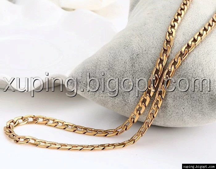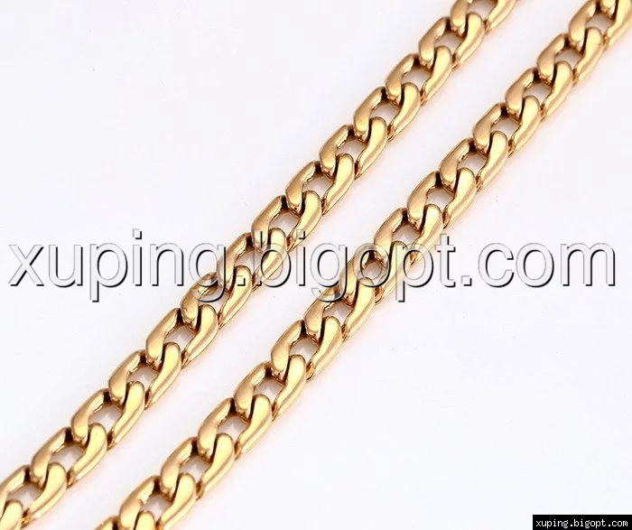 Цепочка выполнена из медицинского сплава на основе латуни с добавлением легирующих елементов, с целью улучшения каких-либо ее свойств, например коррозионной стойкости или прочности. Такой сплав не вызывает аллергии, не вступает в реакцию с потом человека, не меняет свои свойства под воздействием соленой воды и солнца. Поверхность цепочки покрыта золотом 24 карата.