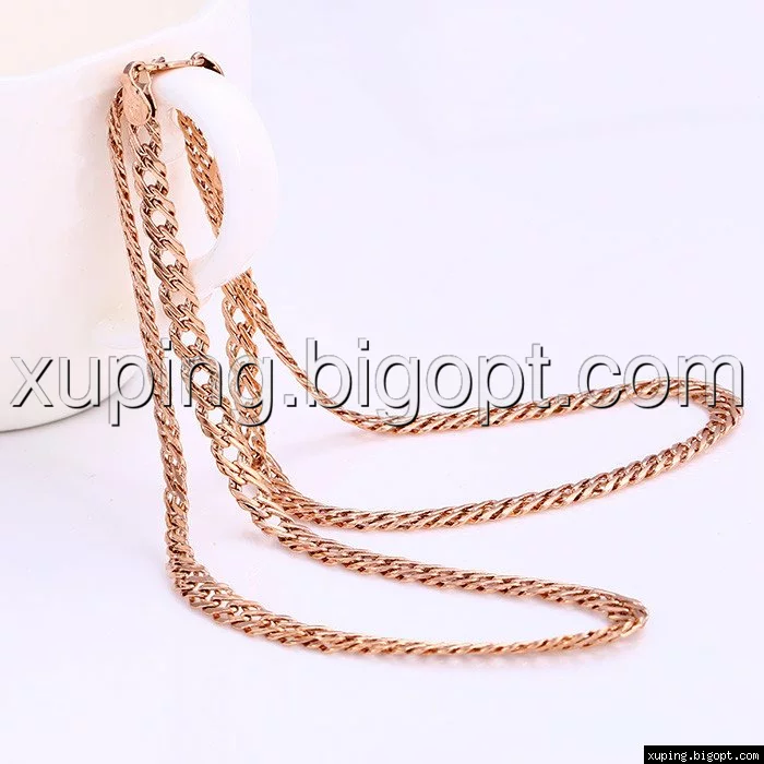 Цепочка выполнена из медицинского сплава на основе латуни с добавлением легирующих елементов, с целью улучшения каких-либо ее свойств, например коррозионной стойкости или прочности. Такой сплав не вызывает аллергии, не вступает в реакцию с потом человека, не меняет свои свойства под воздействием соленой воды и солнца. Поверхность цепочки покрыта золотом 14 карата.