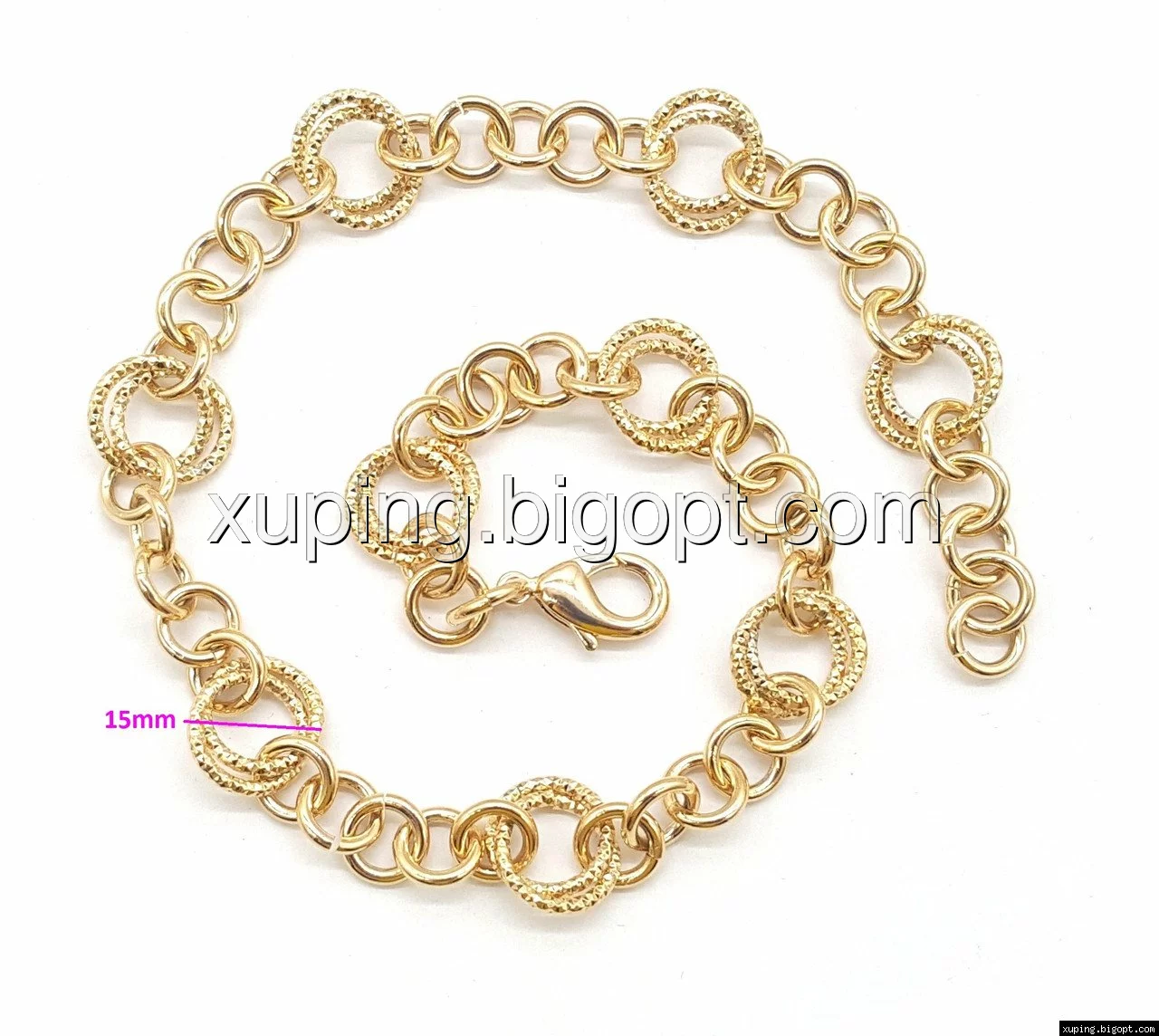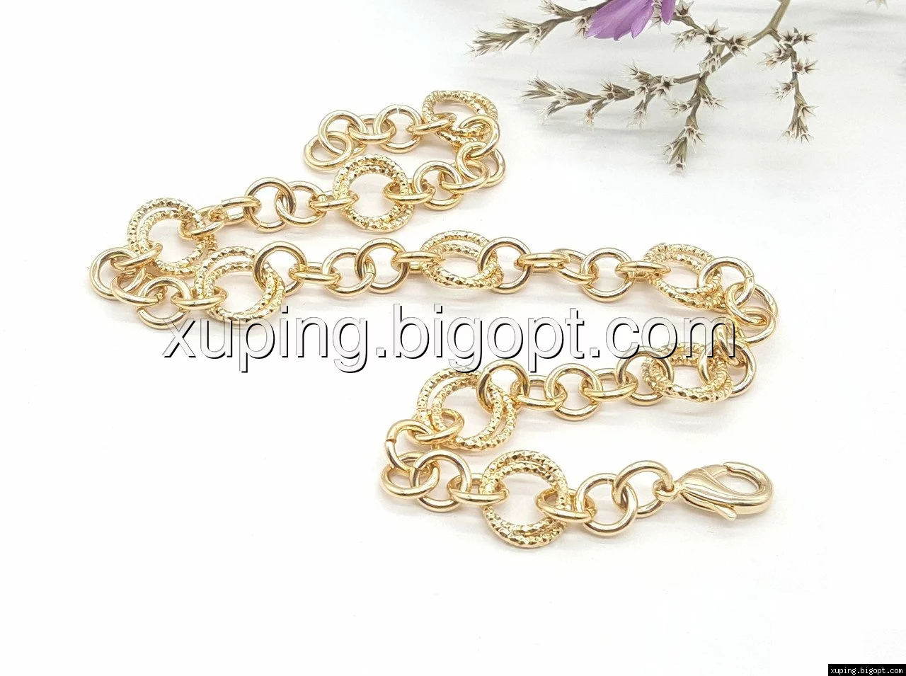 Цепочка позолоченная, Кольца с резным узором, р.40