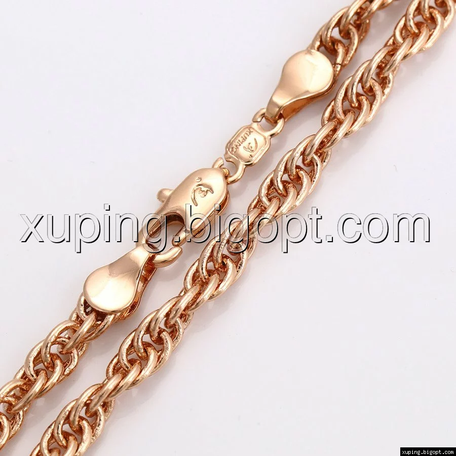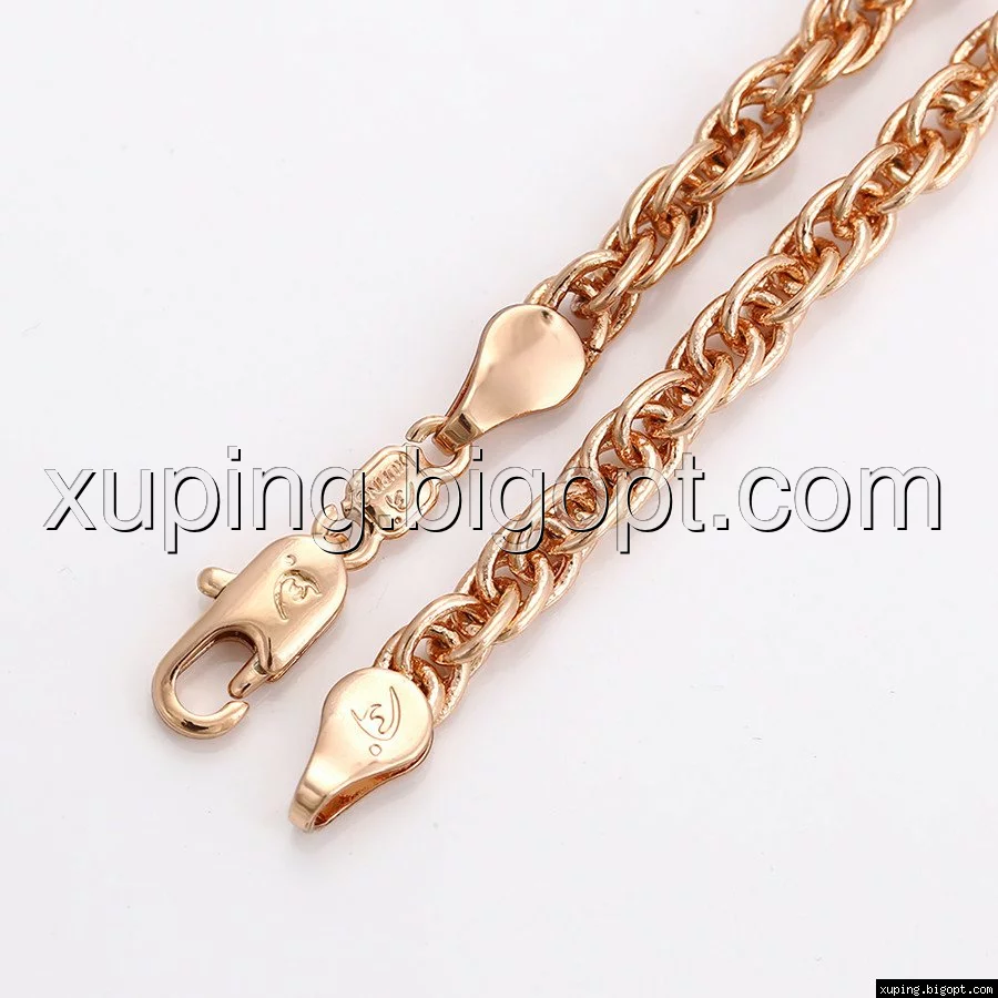 Цепочка выполнены из медицинского сплава, который изготовляется на основе латуни. Сверху бижутерия покрыта позолотой для того чтобы придать ей насыщенный цвет, яркий блеск и максимальное сходство с золотом. Кроме того, в качестве декора мастера используют цирконий, который крепится при помощи крапанов. Как известно этот камень широко применяется в ювелирном искусстве, так как он обладает восхитительным блеском и прочностью. Данная бижутерия представлена заводом-производителем марки «Xuping» – все изделия оригинальны и имеют одинаково высокое качество.
