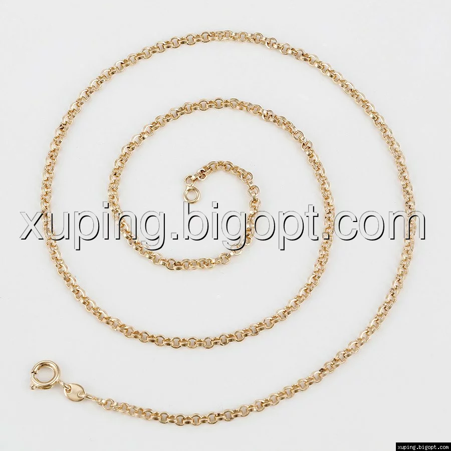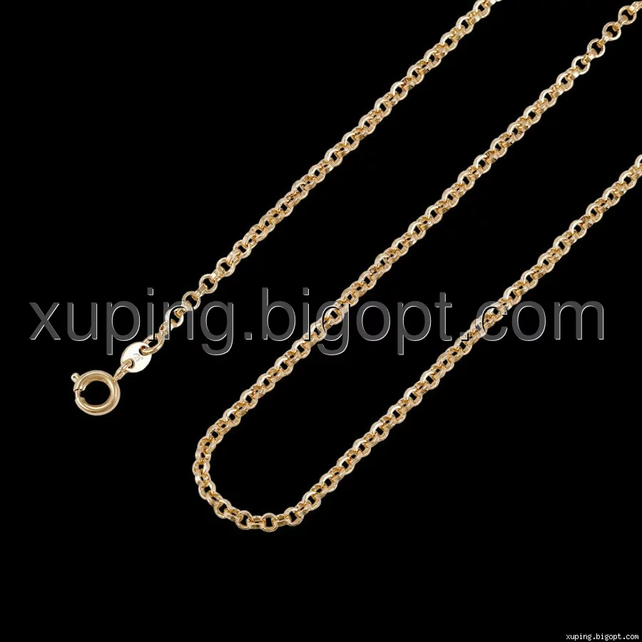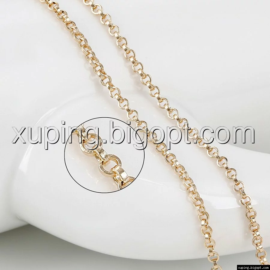 Цепочка выполнена из медицинского сплава на основе латуни с добавлением легирующих элементов, с целью улучшения каких-либо ее свойств, например коррозионной стойкости или прочности. Такой сплав не вызывает аллергии, не вступает в реакцию с потом человека, не меняет свои свойства под воздействием соленой воды и солнца. Поверхность цепочки покрыта золотом 18 карата.
