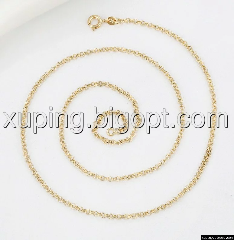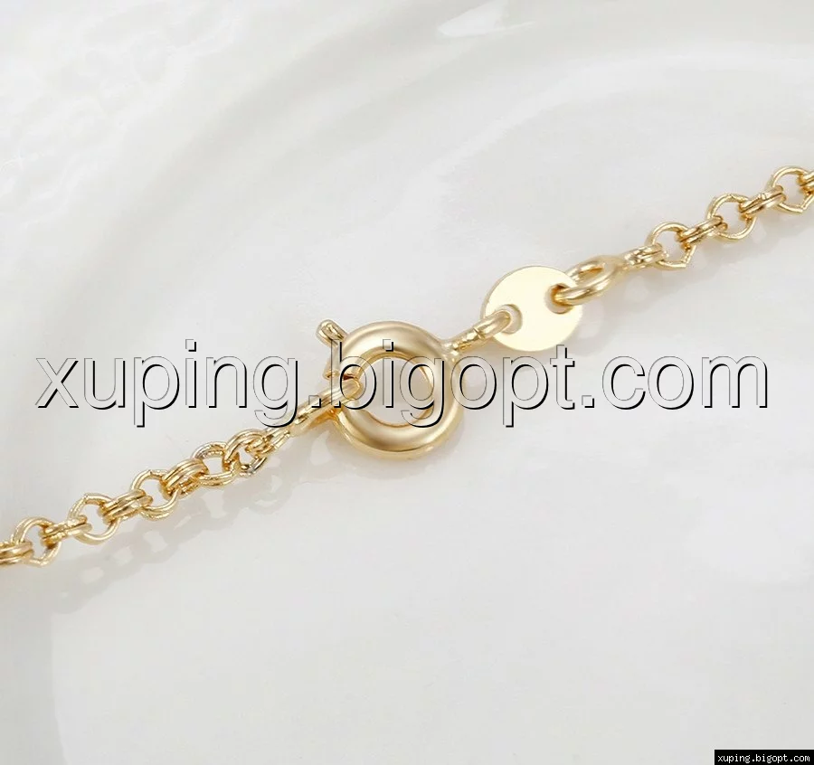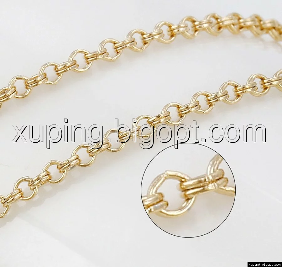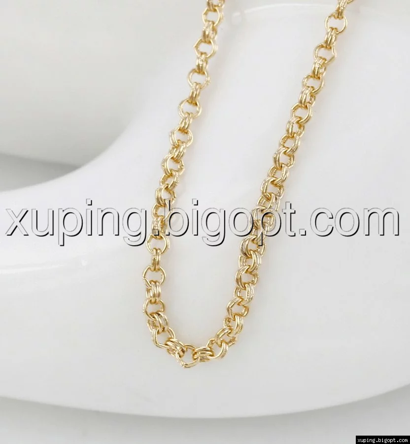 Цепочка выполнена из медицинского сплава на основе латуни с добавлением легирующих элементов, с целью улучшения каких-либо ее свойств, например коррозионной стойкости или прочности. Такой сплав не вызывает аллергии, не вступает в реакцию с потом человека, не меняет свои свойства под воздействием соленой воды и солнца. Поверхность цепочки покрыта золотом 18 карата.