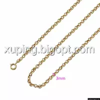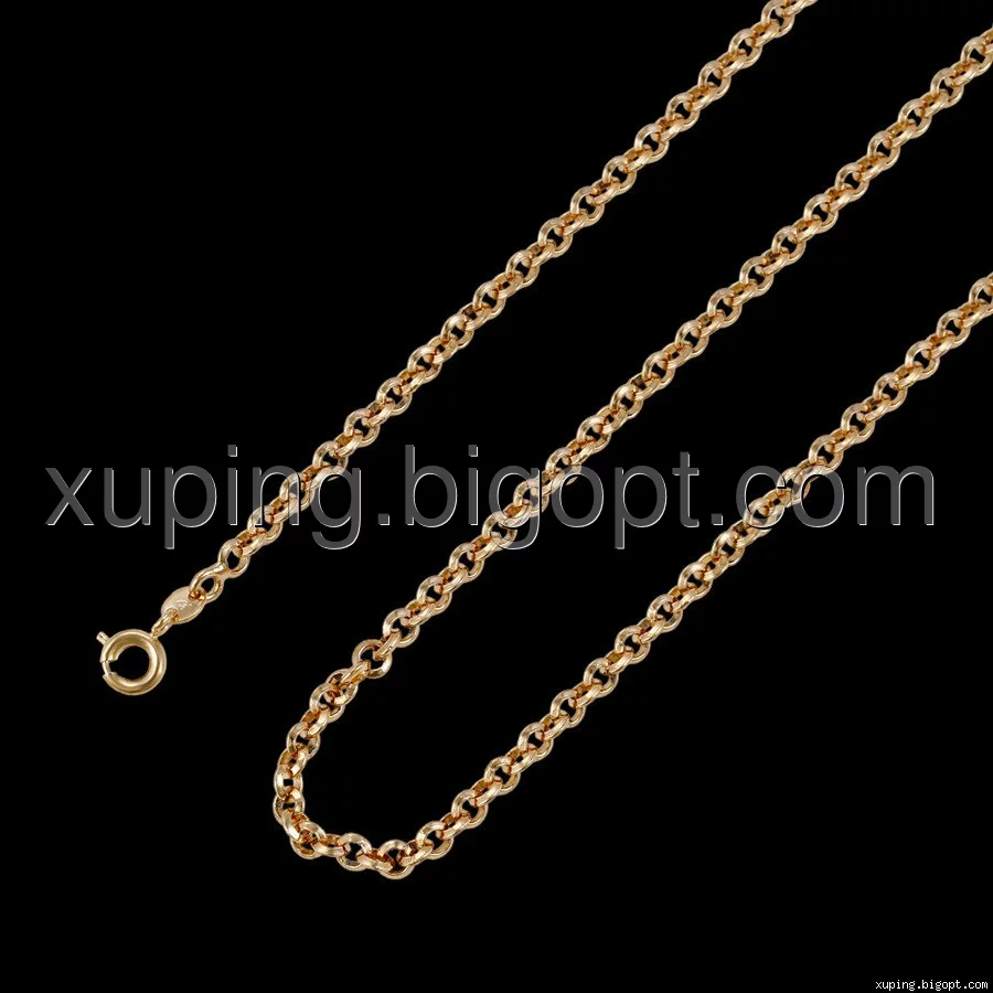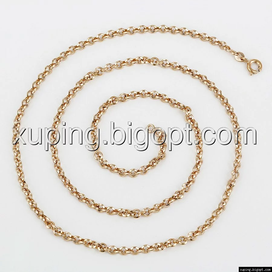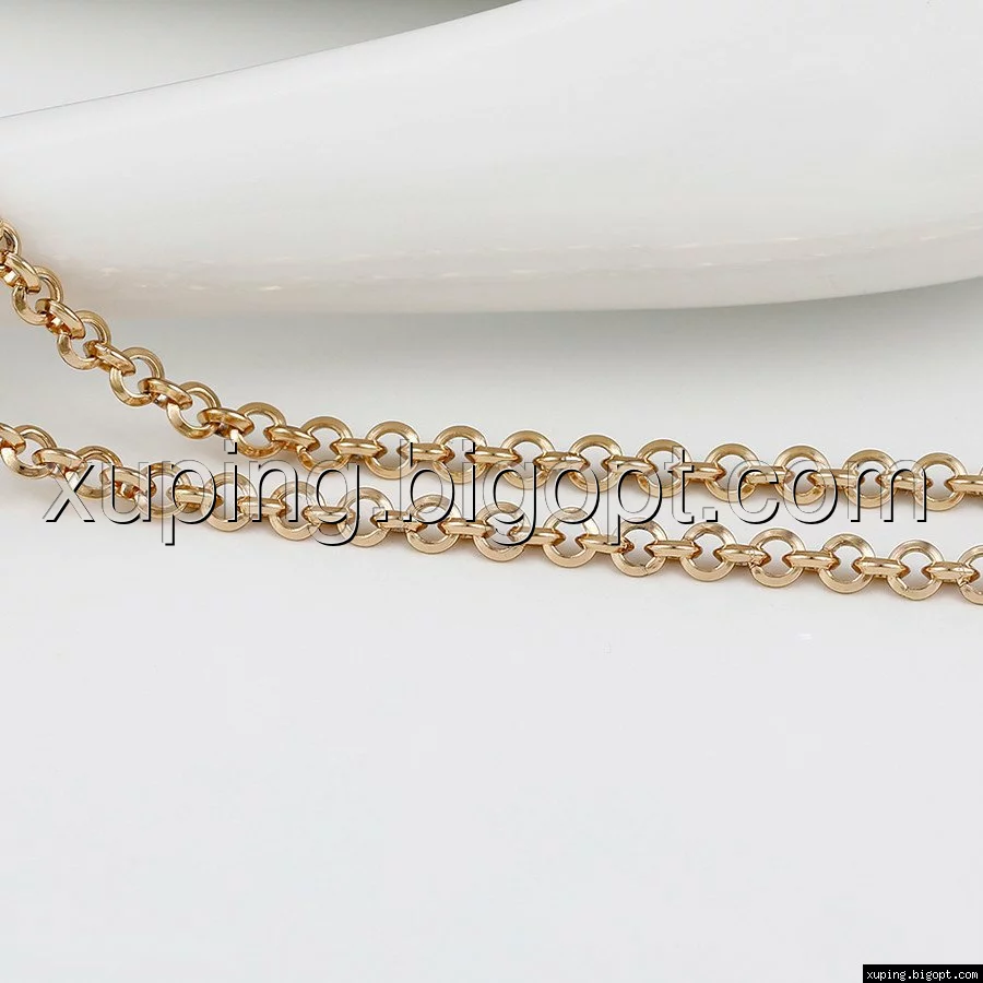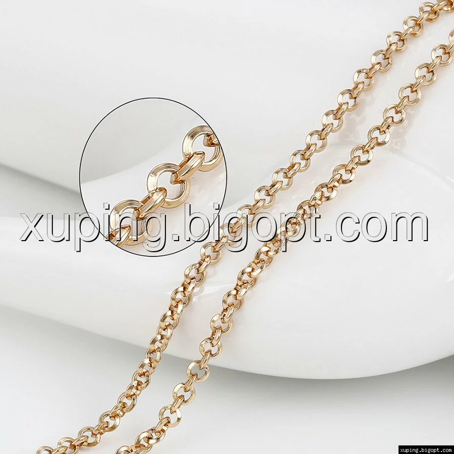 Цепочка выполнена из медицинского сплава на основе латуни с добавлением легирующих элементов, с целью улучшения каких-либо ее свойств, например коррозионной стойкости или прочности. Такой сплав не вызывает аллергии, не вступает в реакцию с потом человека, не меняет свои свойства под воздействием соленой воды и солнца. Поверхность цепочки покрыта золотом 18 карата.