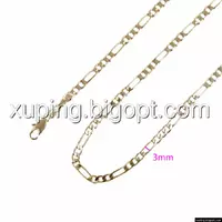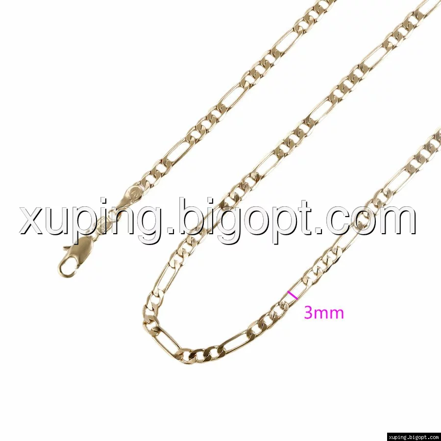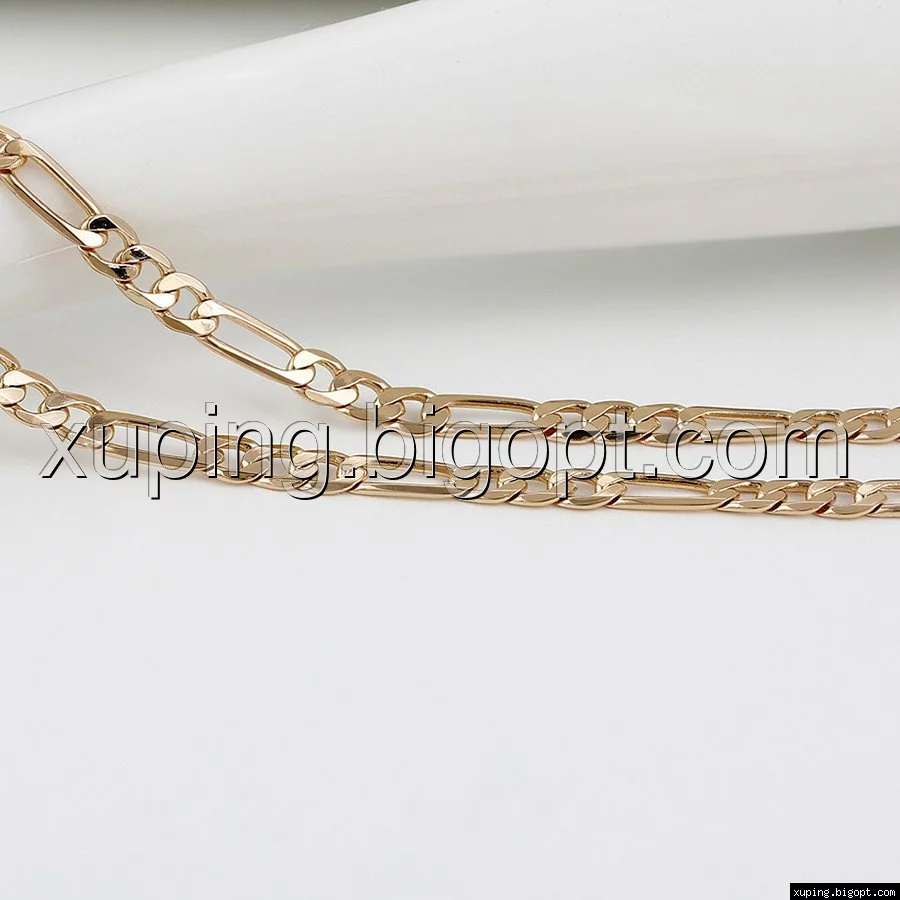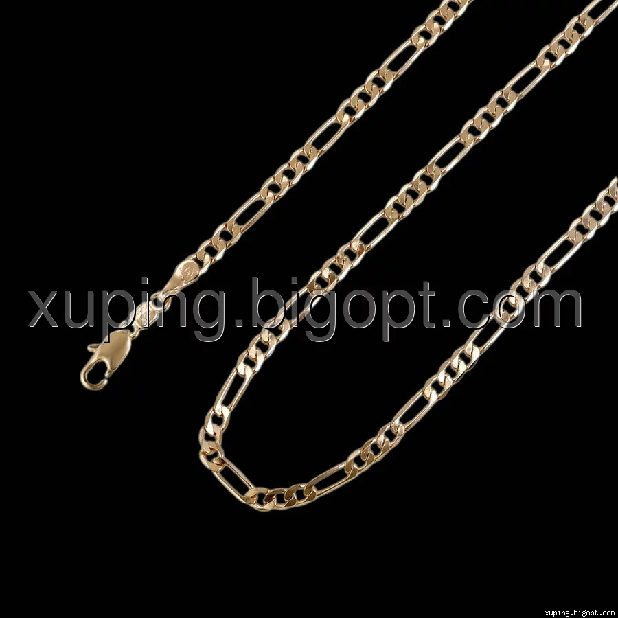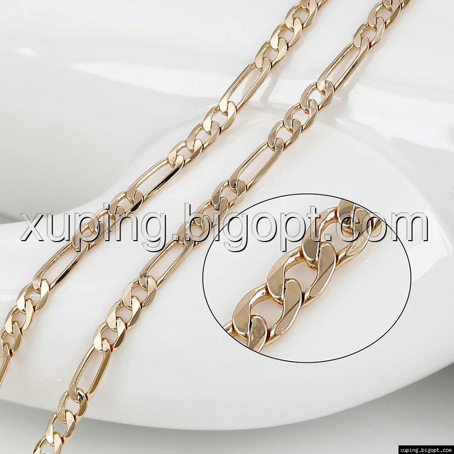 Цепочка выполнена из медицинского сплава на основе латуни с добавлением легирующих элементов, с целью улучшения каких-либо ее свойств, например коррозионной стойкости или прочности. Такой сплав не вызывает аллергии, не вступает в реакцию с потом человека, не меняет свои свойства под воздействием соленой воды и солнца. Поверхность цепочки покрыта золотом 18 карата.