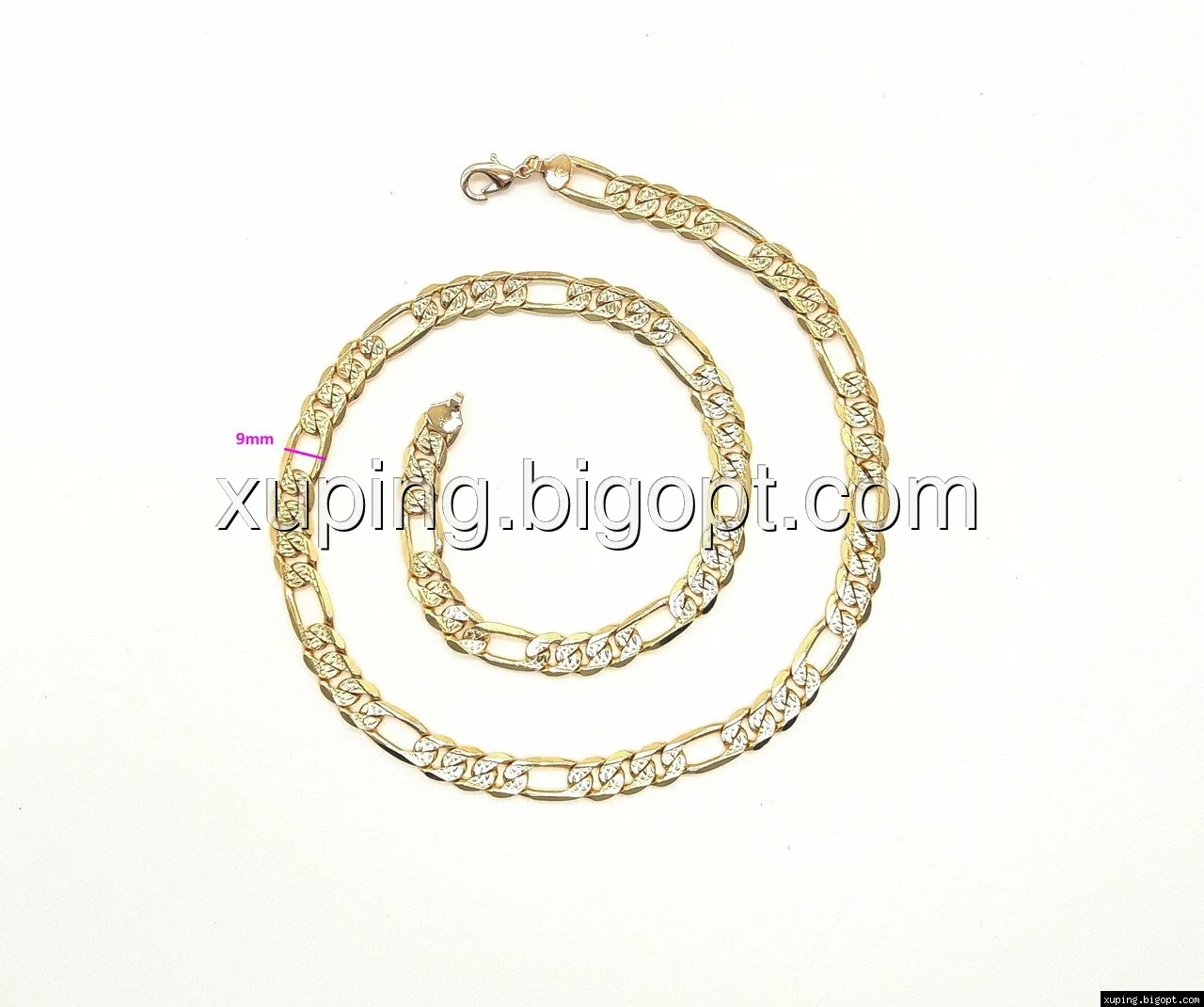 Цепочка выполнена из медицинского сплава, который  изготовляется на основе латуни. Сверху бижутерия покрыта позолотой  для того чтобы придать ей насыщенный цвет, яркий блеск и максимальное сходство с золотом. Кроме того, в качестве декора мастера используют цирконий, который крепится при помощи крапанов. Как известно этот камень широко применяется в ювелирном искусстве, так как он обладает восхитительным блеском и прочностью. Данная бижутерия представлена заводом-производителем марки «Xuping» – все изделия оригинальны и имеют одинаково высокое качество.