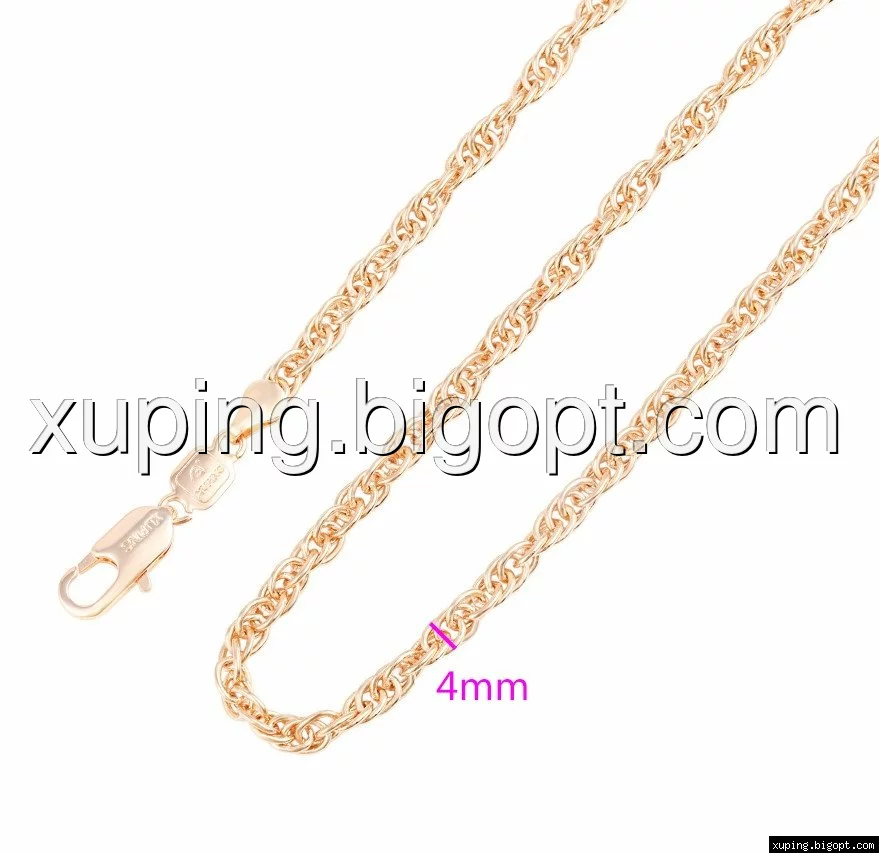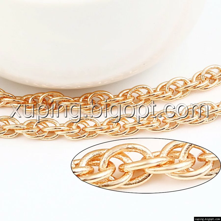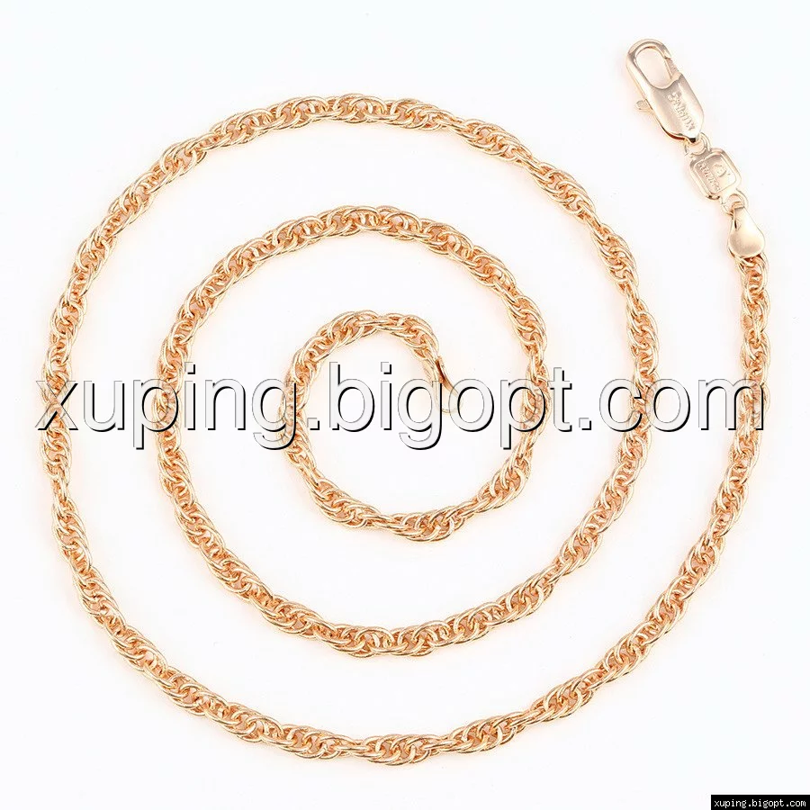 Цепочка выполнена из медицинского сплава на основе латуни с добавлением легирующих элементов, с целью улучшения каких-либо ее свойств, например коррозионной стойкости или прочности. Такой сплав не вызывает аллергии, не вступает в реакцию с потом человека, не меняет свои свойства под воздействием соленой воды и солнца. Поверхность цепочки покрыта золотом 18 карата.