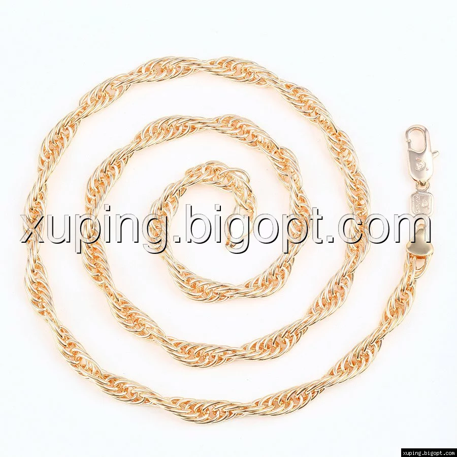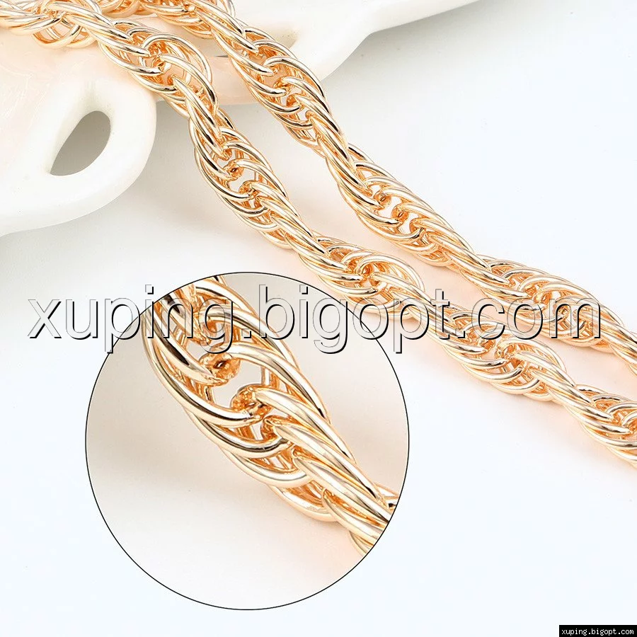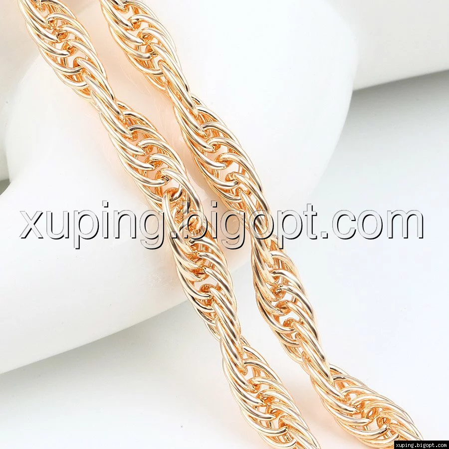 Цепочка выполнена из медицинского сплава на основе латуни с добавлением легирующих элементов, с целью улучшения каких-либо ее свойств, например коррозионной стойкости или прочности. Такой сплав не вызывает аллергии, не вступает в реакцию с потом человека, не меняет свои свойства под воздействием соленой воды и солнца. Поверхность цепочки покрыта золотом 18 карата.